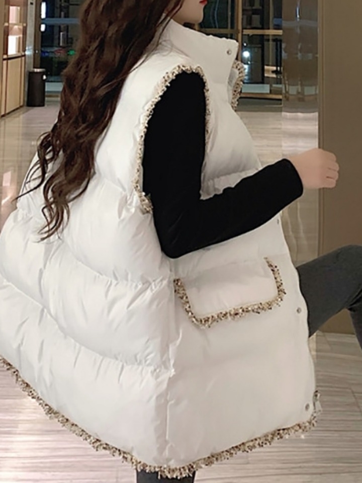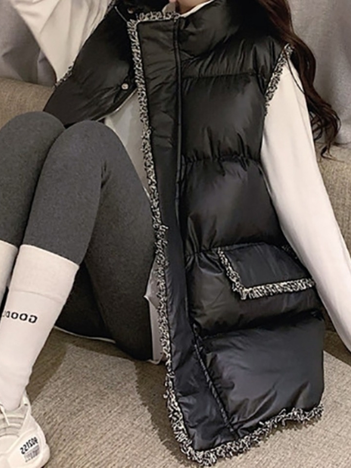 穿棉衣显臃肿,那就来上一款马甲穿出与众不同的风格,纯色系随意搭配不过时,中长的版型轻松穿出层次感,秀出你的女神范。