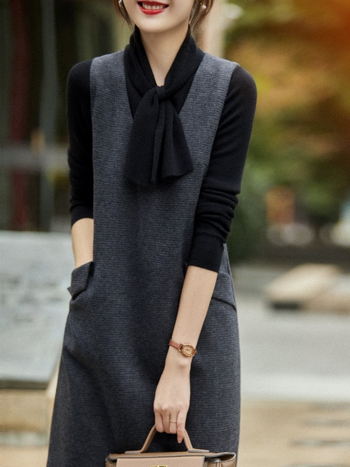 这款来自笑涵阁家的时尚中长款的连衣裙,是非常优雅大气的一款设计单品,属于精致的赫本风格,设计元素比较精致大气,首先是黑色的颜色,搭配着松紧收腰的款式,非常的优雅显瘦,其次是竖条纹的图案,还有无袖的款式,经典大气。