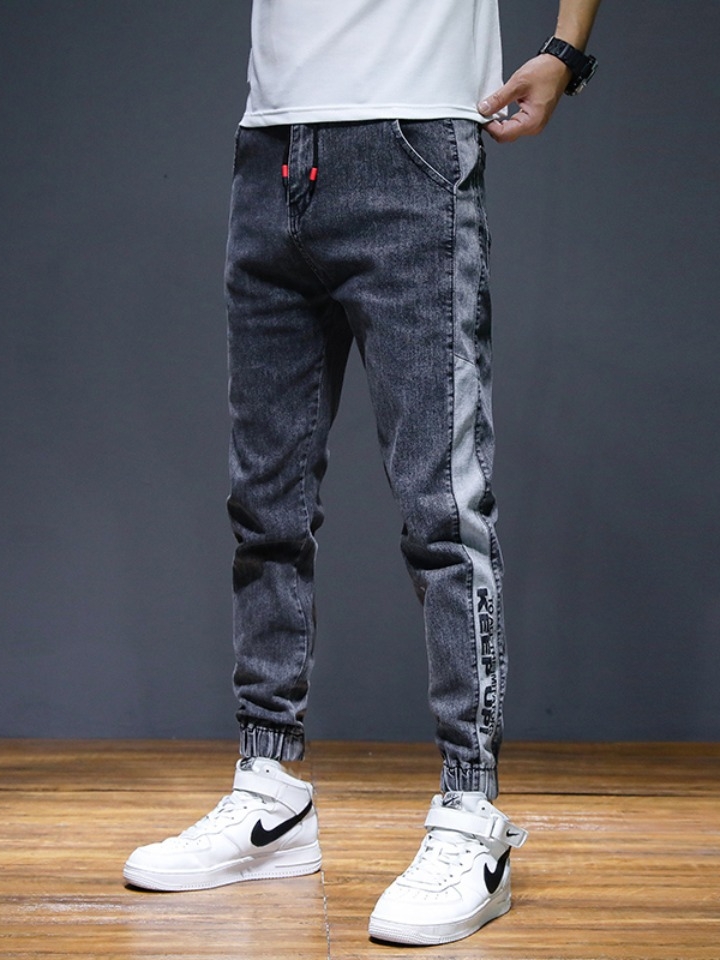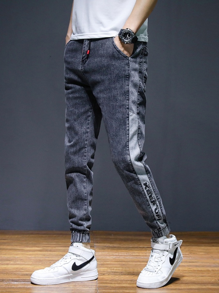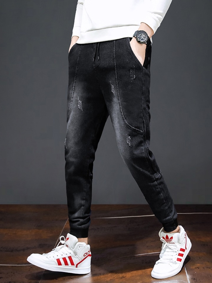 这件牛仔长裤共有四款,风格大体一致,细节略微有点不同。运用了猫须点缀和破洞的处理,时尚率真,尽显不羁的个性。裤脚可卷起,露出脚踝,搭配运动鞋,简约大气,体现潮男风范。立体的裁剪,修身显瘦,不挑身材。