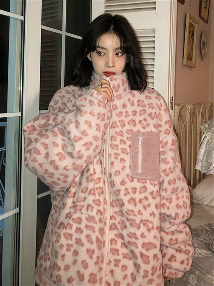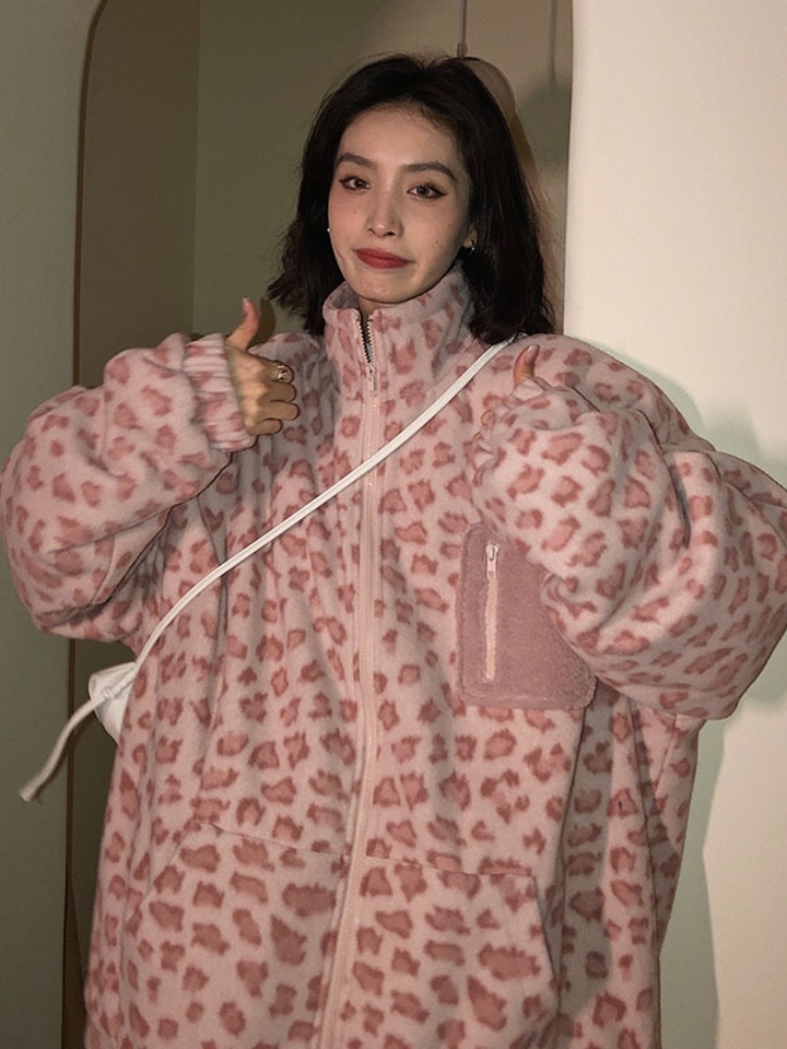 这是一款加绒加厚的羊羔绒棉衣,看起来毛绒绒的感觉,非常惹人喜欢。立领拉链的设计非常简约,并且方便穿脱。精致的印花设计更显时尚感。面料是柔软厚实的羊羔毛材质,保暖舒适。