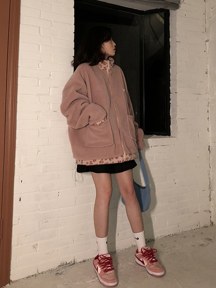 少女感十足的一款嫩粉色羊羔绒两面穿大衣,淡粉色非常甜美可爱,羊羔绒内衬更是非常保暖又增添软萌气质,中长款不管是搭配裙装或裤装都非常好看,宽松的版型穿着也非常舒适。