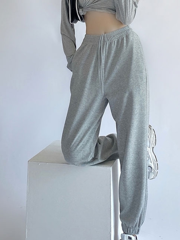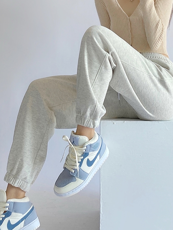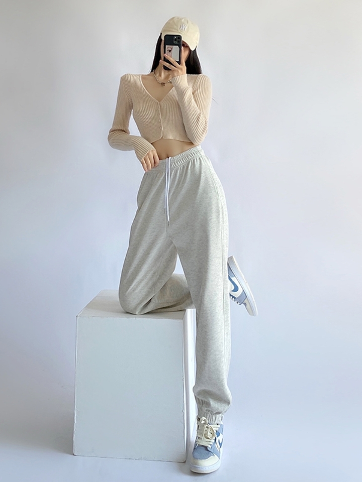 裤头是松紧的设计,适中的弹力几乎不挑身材穿着,也方便日常的穿脱。直筒的版型,略微的宽松上身轻松又自在,褶皱松紧的裤脚设计,修饰腿型又显瘦。