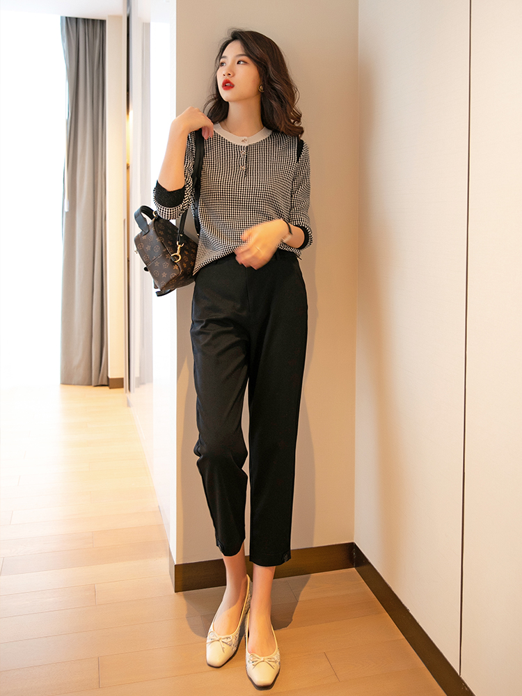 我觉得这件上衣超好穿搭,已经尝试过各种穿法啦,其中最喜欢的就是搭配西装裤,简单一套就可以出门啦,还很有职场风范儿呢。