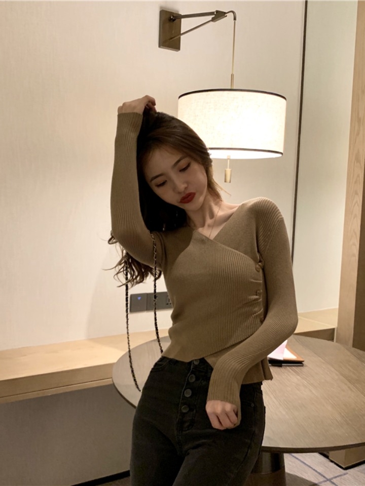 简约型上衣,简简单单的款式凸显了女性知性气质美,V领长袖的设计凸显了优雅大方,优质的面料质感柔软,很是亲肤,略显宽松的衣型穿着大方得体。