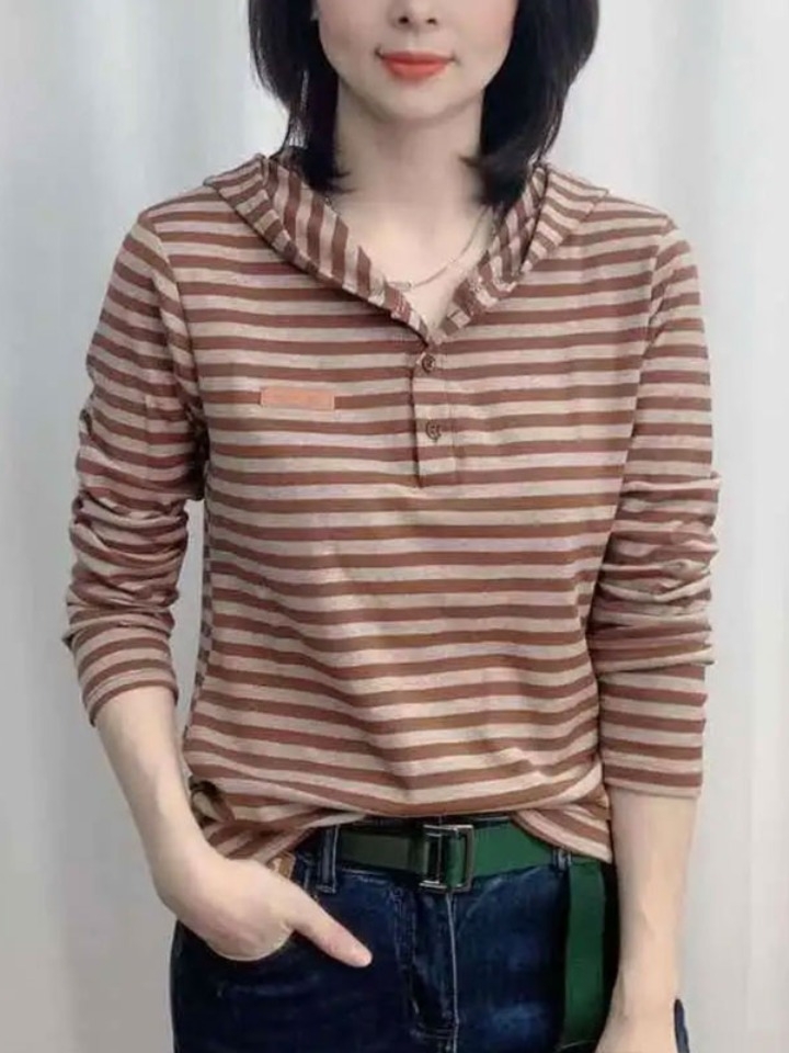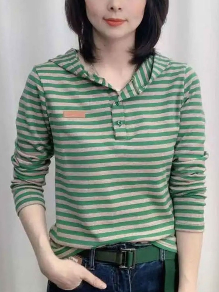 此款宝贝简洁大方,宽条纹颜色交杂,款式百搭,极致惬意。天然柔和的面料,上身之后舒适自然,版型不易变形,绝对是您的不二选择