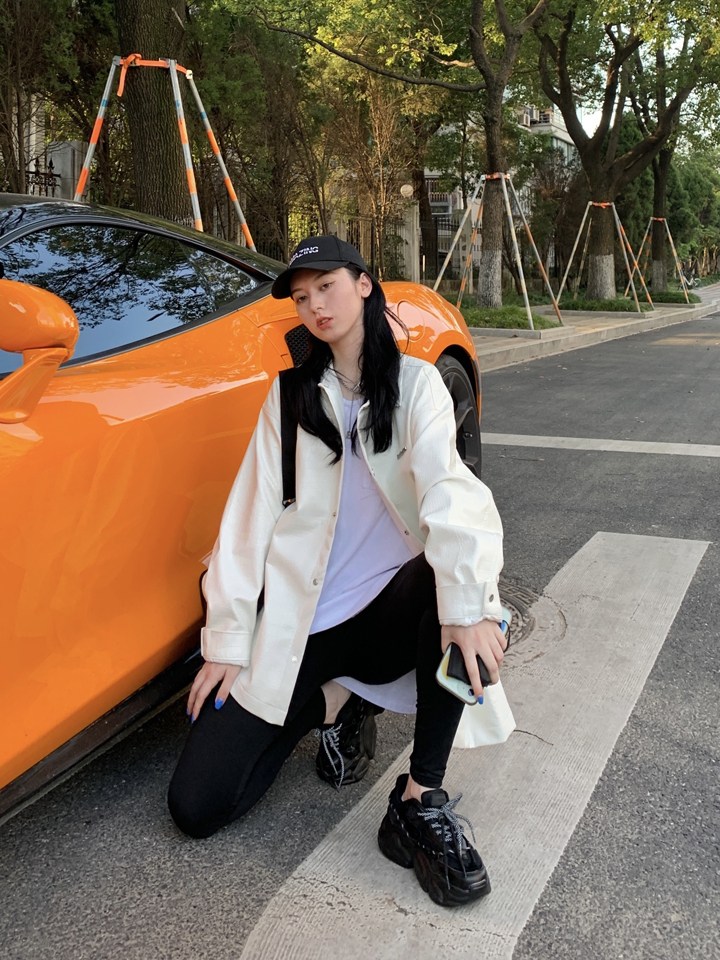 颇具创意感的夹克,独树一帜的撞色设计,缔造专属于你的个性风采。宽松落肩的版型处理,提升了单品的包容性,表达出你慵懒随性的着身风范。小立领的领型设计,修饰出颈部线条,增添了几分干练与知性的魅力。胸前与袖子上分明的印花点缀,进一步丰富单品层次感。肩部线条修饰加