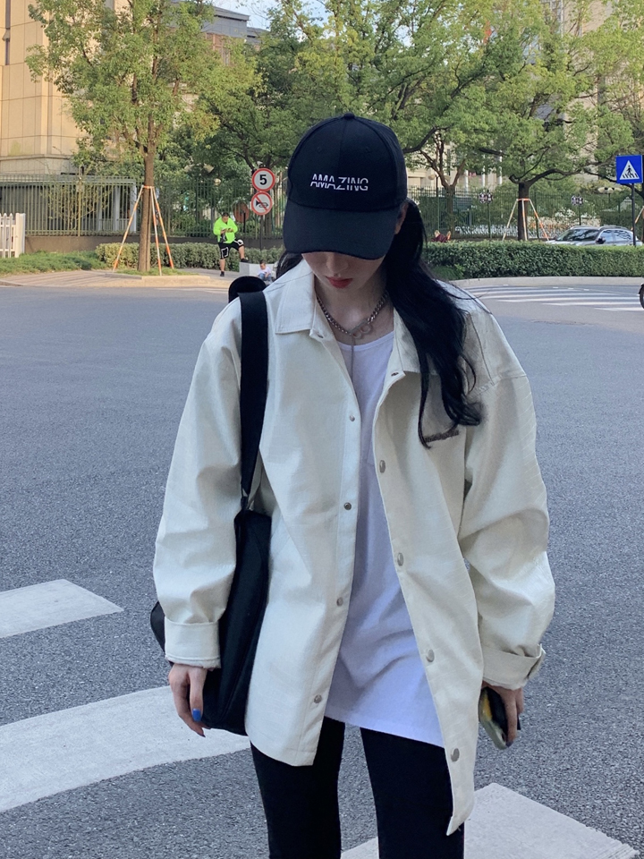 简约帅气的纯色皮衣夹克,采用了夹层式的设计,不仅更好的起到防风保暖性,皮衣面料也是采用的pu皮材质剪裁,使得衣服柔软性很强。宽松的版型搭配立领设计,修饰小巧脸型,对身材的包容性大,轻松遮住腰腹部肉肉,上身显瘦不挑人。门襟单排多扣设计,方便穿脱,美观实用。