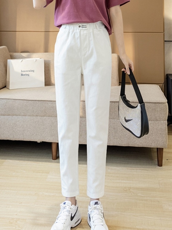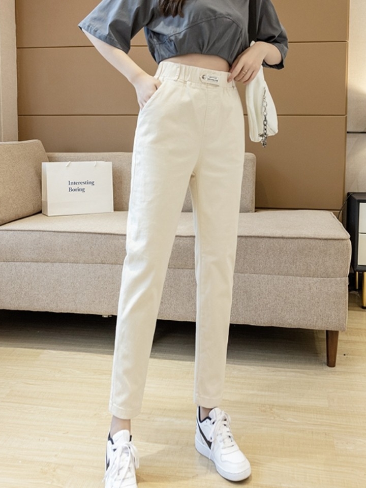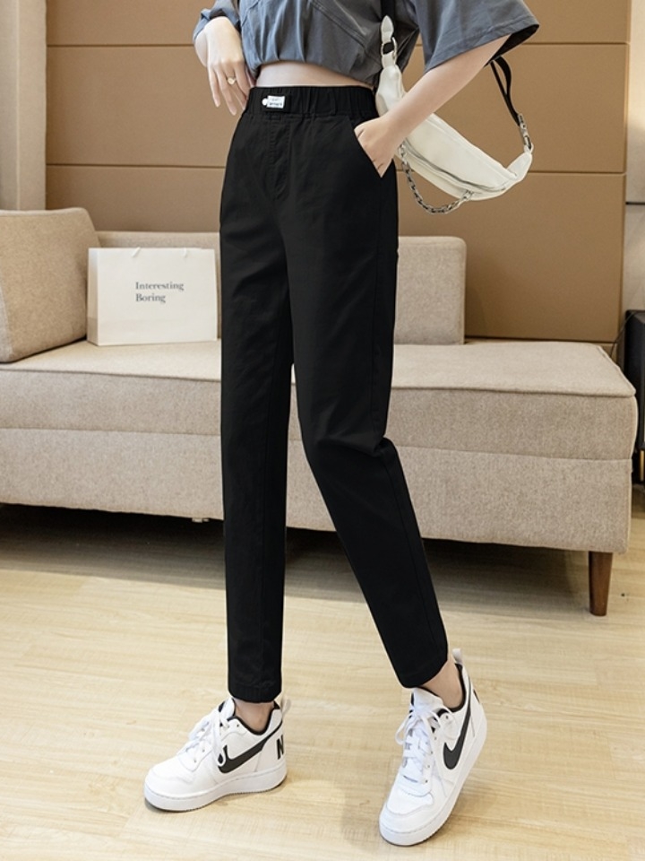 非常非常显瘦的一款裤子,高腰哈伦,不必煞费苦心地卷裤脚赶时髦, 不造是心理作用还是什么,总觉得露脚踝的,无论配什么裤子鞋子总会更潮哒~上宽下窄。