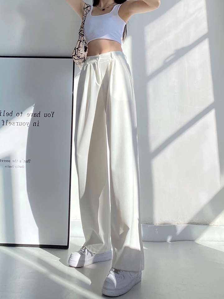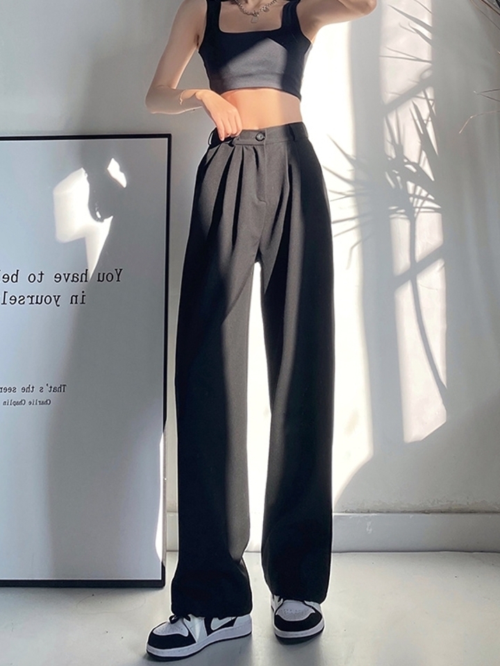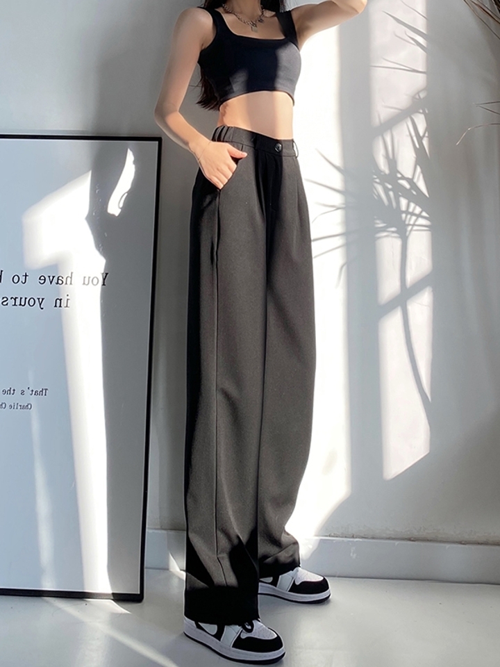 简结百搭阔腿裤,舒服,透气,有弹力(这种裤型的裤子几乎适用于所有身体类型,随着夸张而又随性的阔腿,你可以行动自由完全不会有被束缚包裹的不舒适感,更重要是的它简约易搭,特别适合懒得纠结搭配的你,轻而易举的穿出气场!