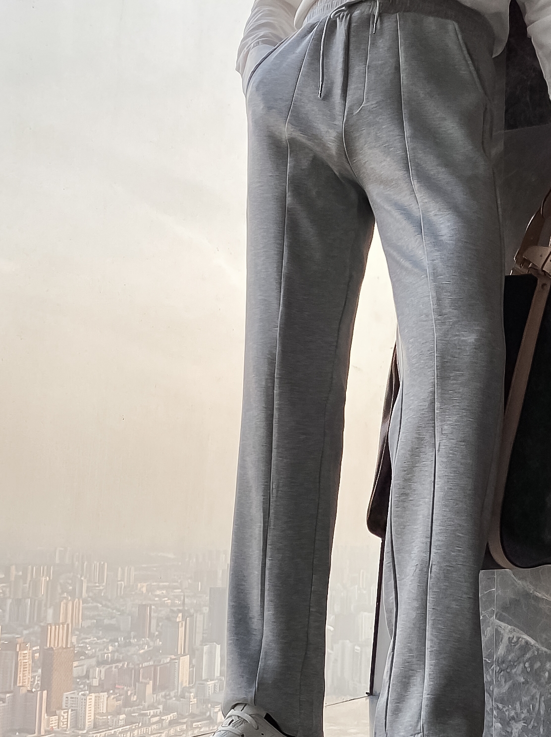 高腰的设计,拉长腿部线条,显瘦效果很好,高腰的版型,很显高挑,修身的剪裁,修饰腿部曲线,上身很有范。