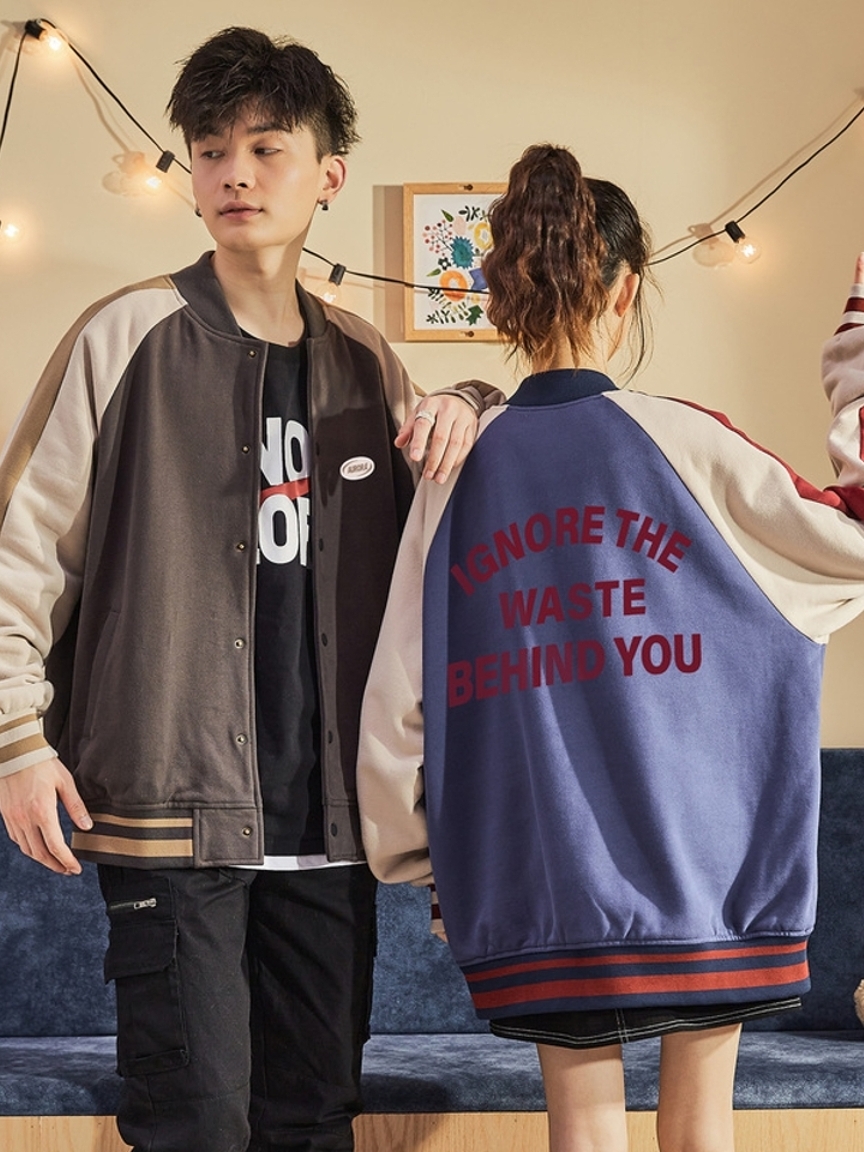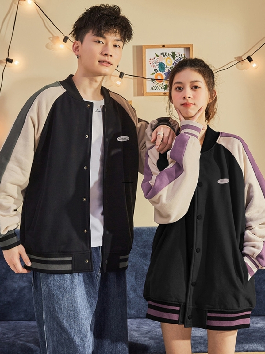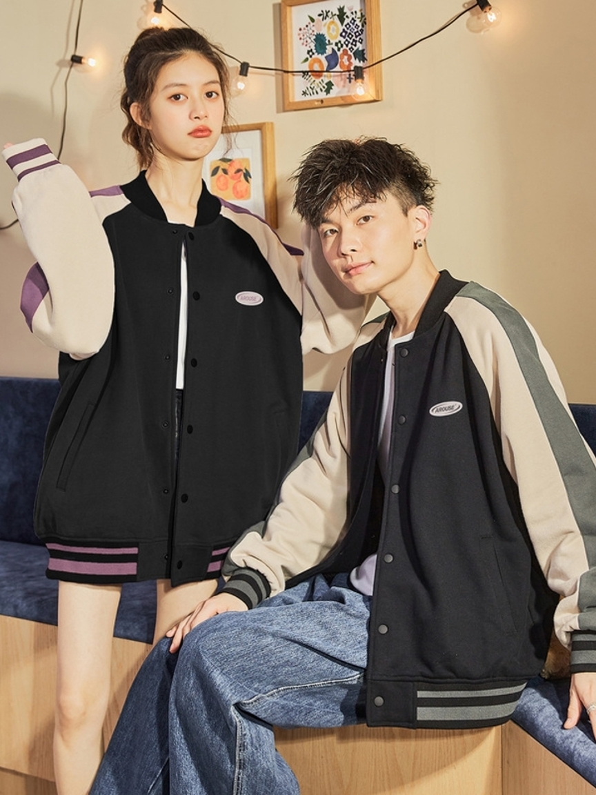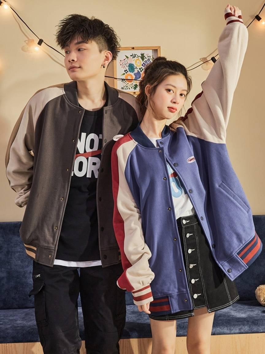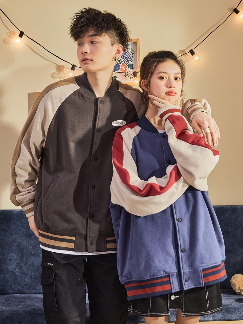 插肩袖设计,减少束缚,带来舒适的穿着感,潮牌欧美风棒球夹克,轻薄修身款式,更适合早春季节的搭配,胸前的撞色拼接与衣袖相呼应,增添个性看点。