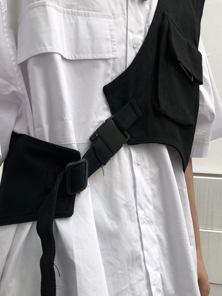 斜门襟的设计,通顶的拉链,让这款马甲透露着浓浓的设计感,别具一格!不规则的衣身,让这个冬天穿出与众不同的你~表面几何纹路的绗缝效果,增加层次感