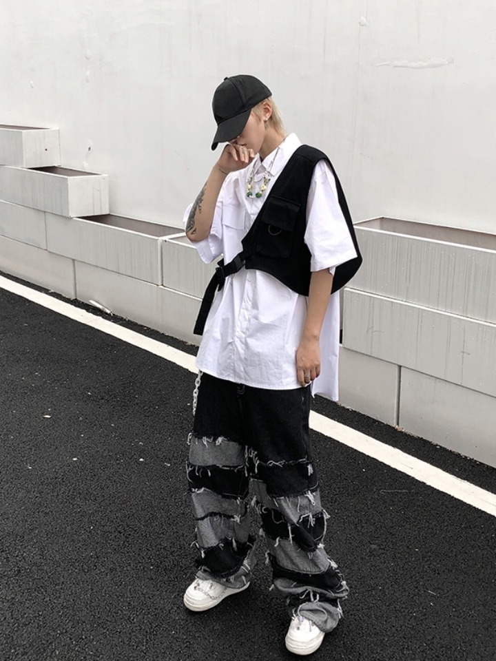 这款牛仔裤的设计很有特色,高腰的版型,很好的修饰了身材比例,显瘦效果很棒,搭配一件T恤,就能轻松穿出时尚感。