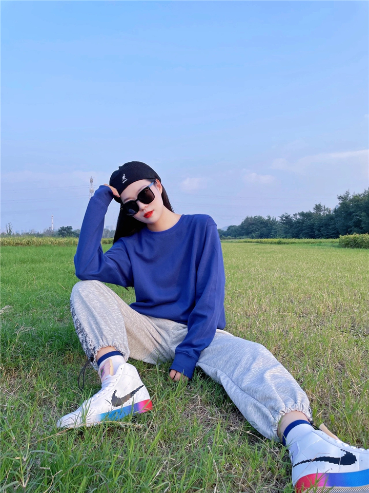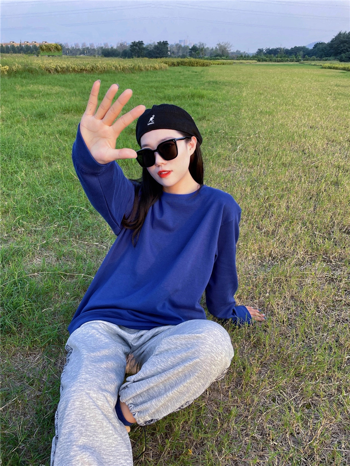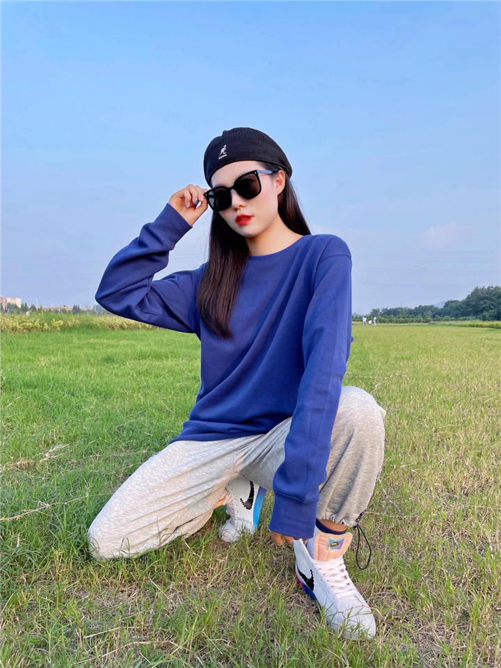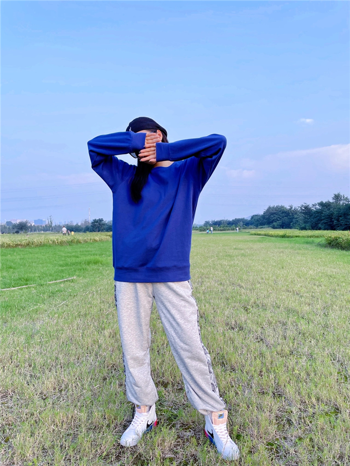 超爱的克莱因蓝卫衣,蔚蓝的天空下更显白,穿在身上都不想脱下来,质量也超级好,健康布材质!特别的舒适亲肤。