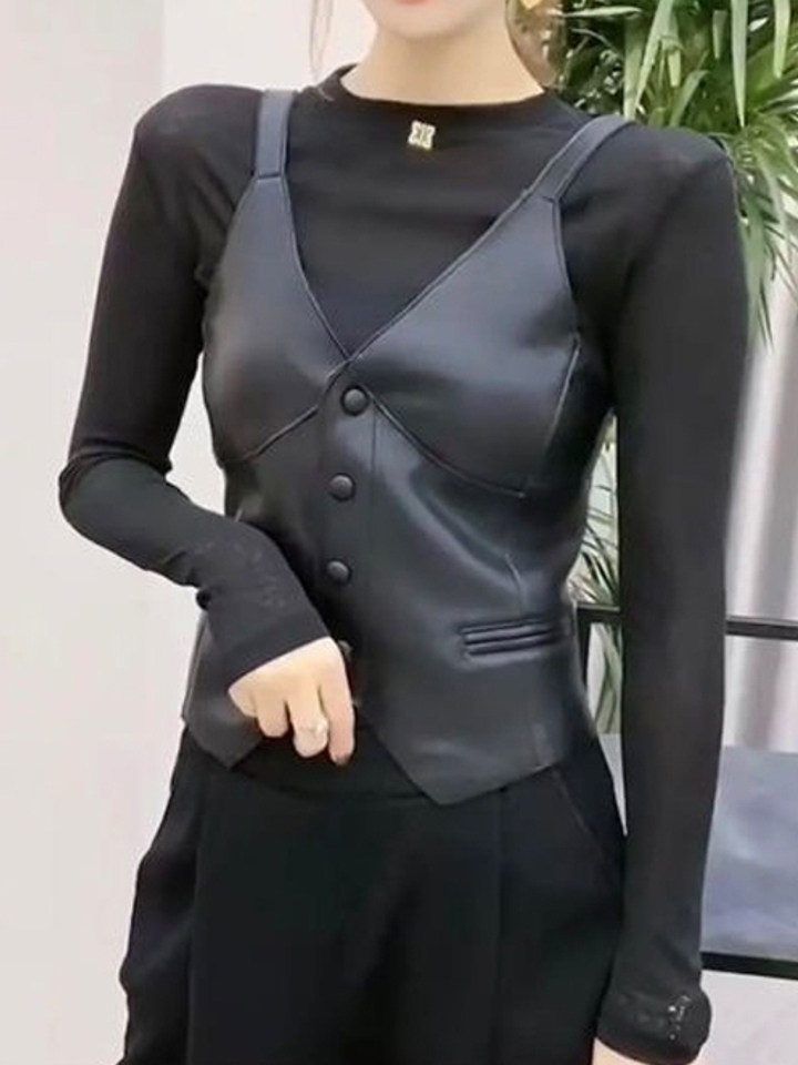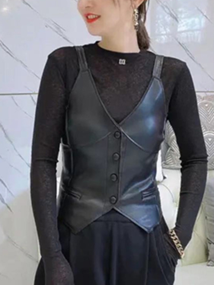 简约的圆领无袖马甲设计,精选优质的PU皮面料设计,色泽均匀,带来光滑的手感,彰显品质。前襟拉链设计,带来便利的设计感。