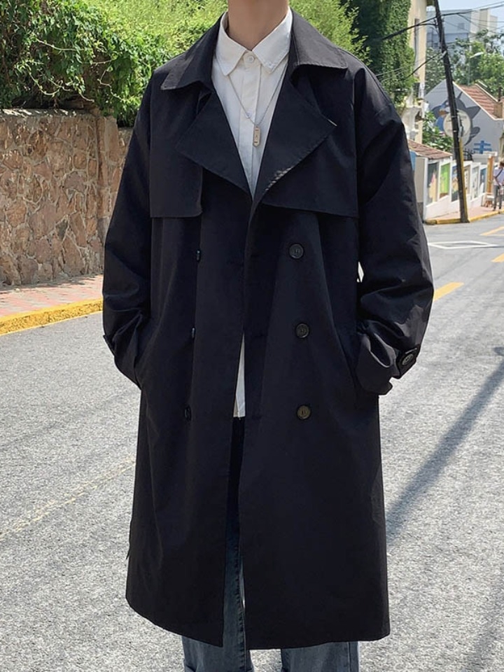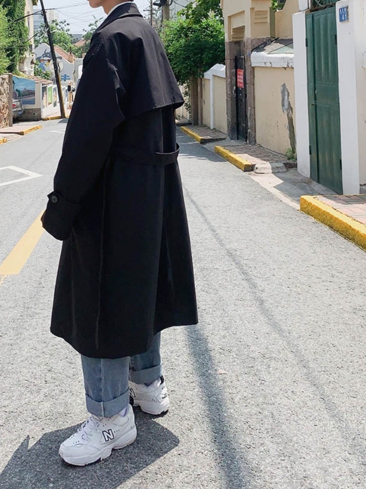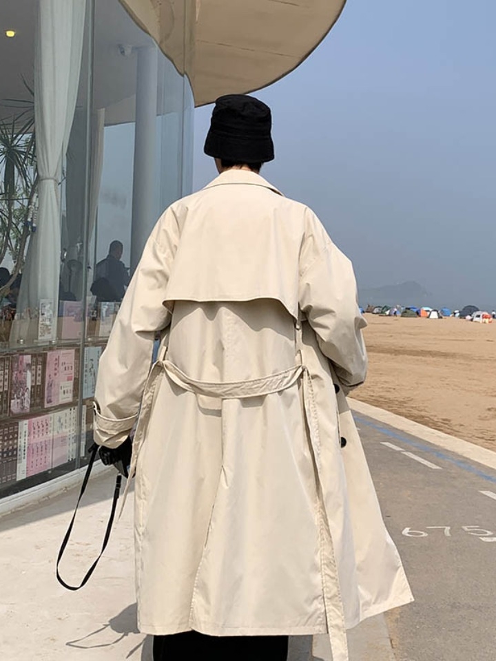 韩范十足的中长款风衣外套,经典的双排扣设计,既简洁大方有时尚有型,腰部采用极致的腰带收腰,极致修身,非常的干练显气质哈~