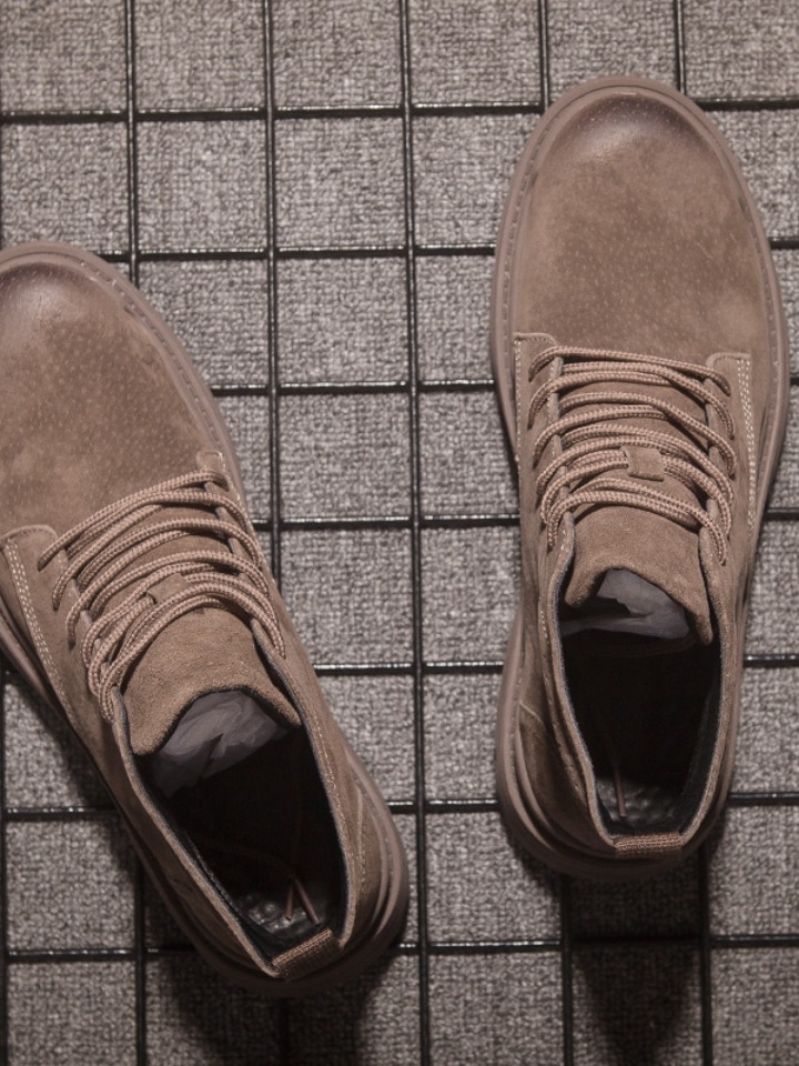 这款高帮马丁靴极具复古特色和潮流风格,高帮靴筒的高度也比较适合日常穿着。搭配方面,上衣可选择黑色T恤外搭连帽抽绳夹克,下半身配入修身的黑色牛仔裤展现腿部线条,再配上这款靴子,整体看起来颇有一种率性硬朗的风格,男人味十足。