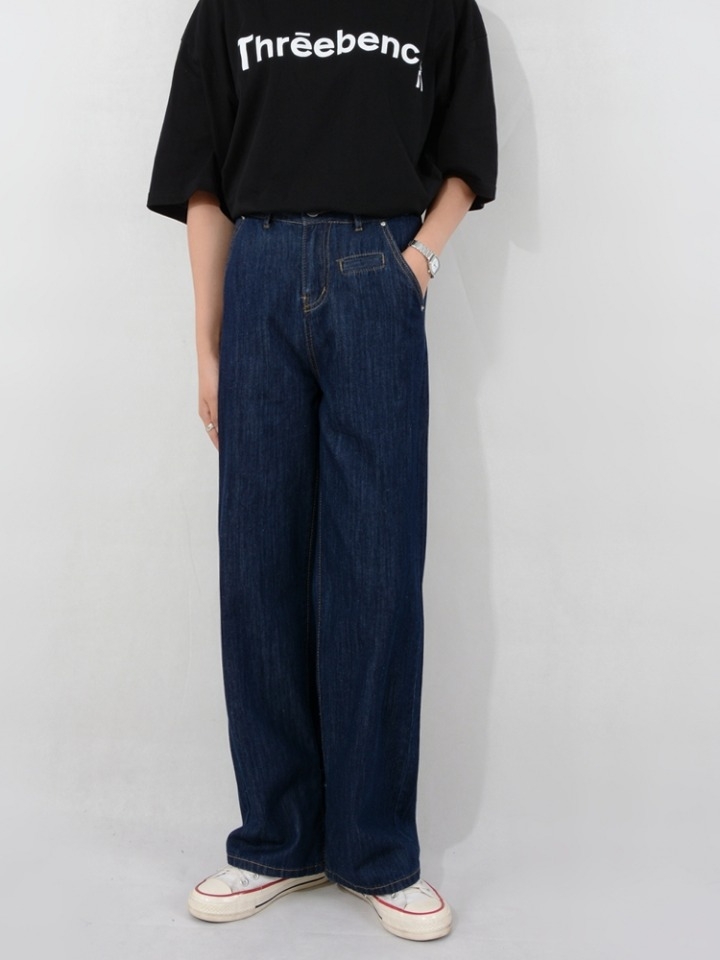 这款牛仔裤给人以一直随意无所谓的态度,布料采用薄款的牛仔面料,舒适透气,适合夏天穿着,垂坠感飘逸性好,宽松的阔腿版型,带着潇洒的气度