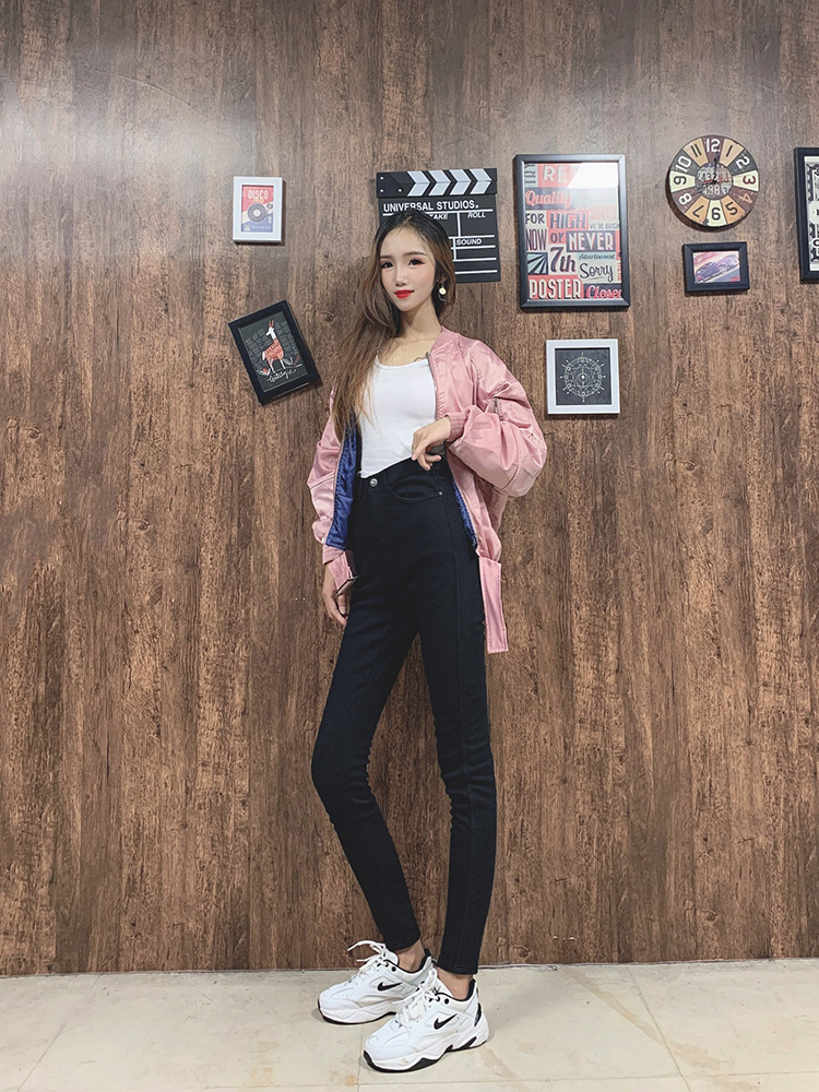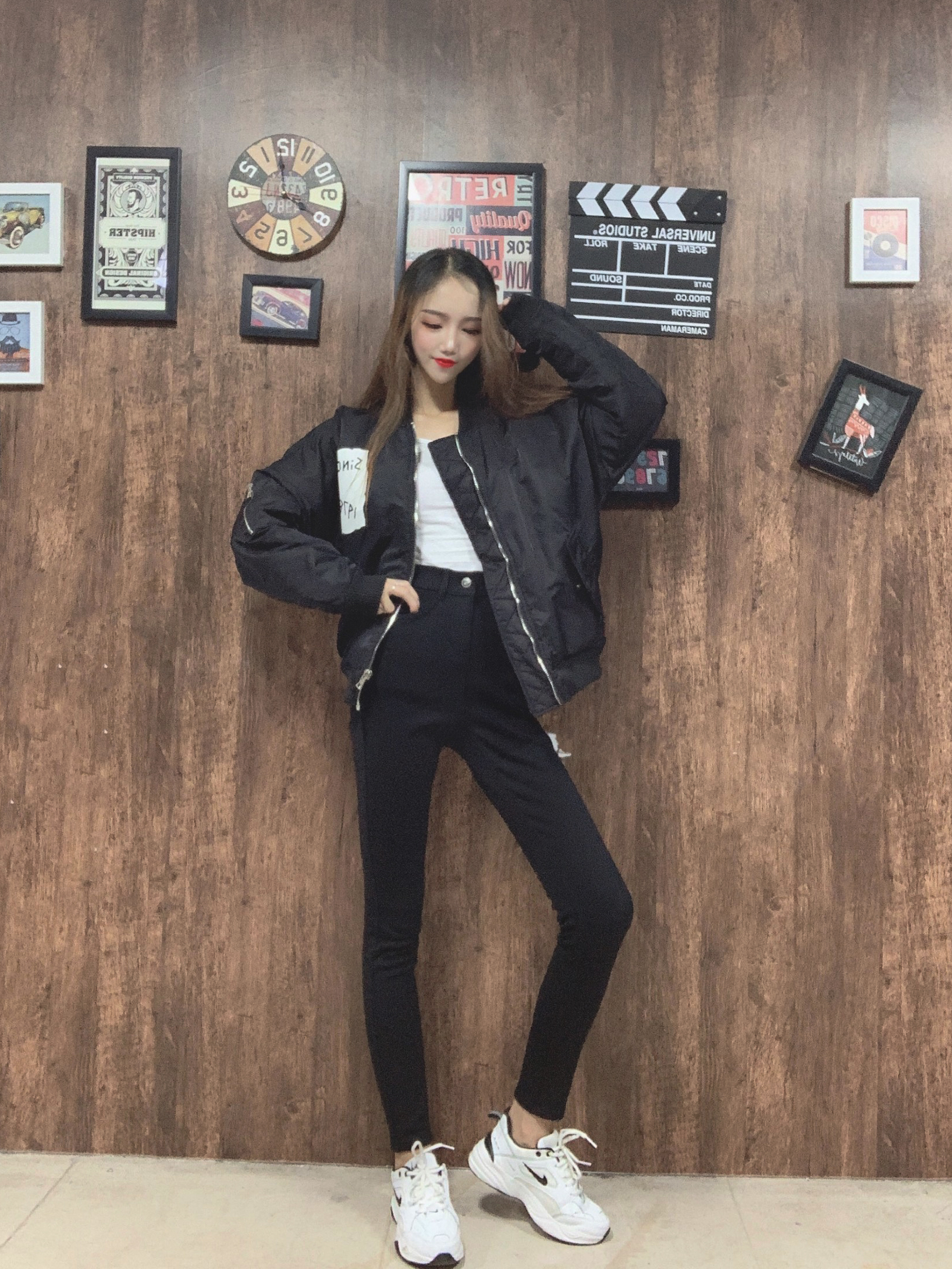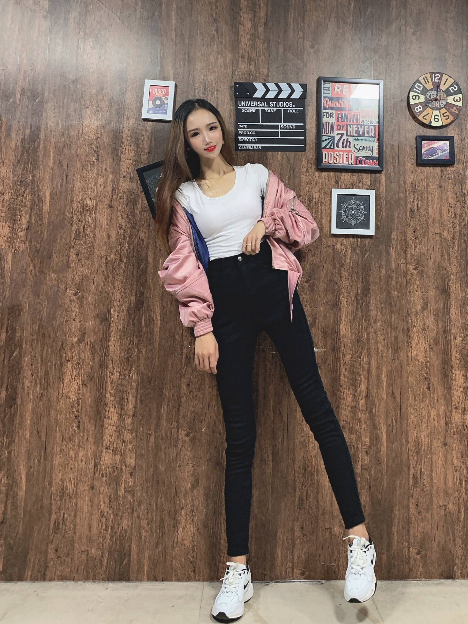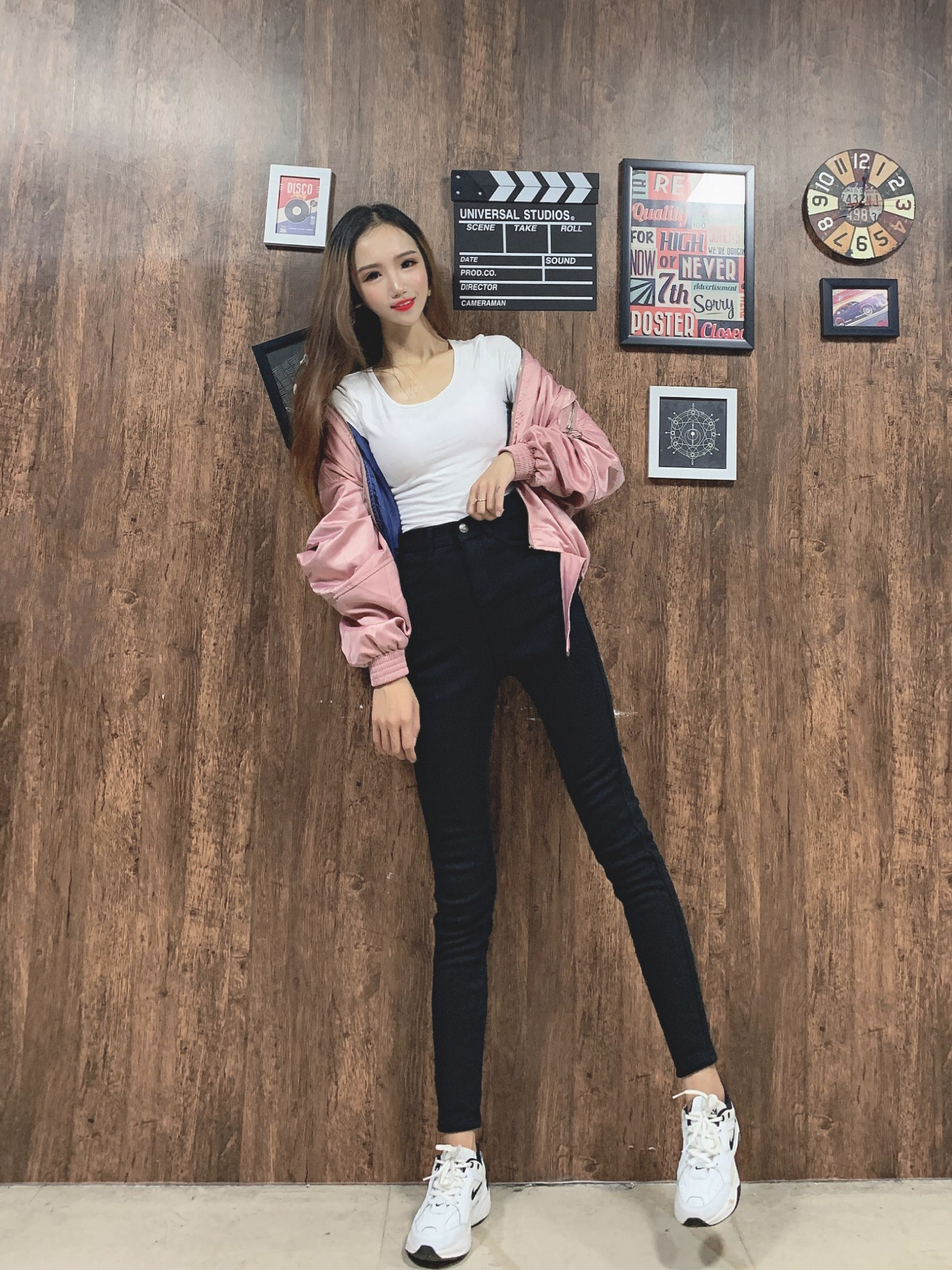 这款裤子以贴合腿型的韩版出众设计手法勾勒出腿部轮廓的线条,使得个性化的表达不显夸张,建议搭配一件毛衣,拉高身材比例,天更冷一点,可以加一件毛呢外套。