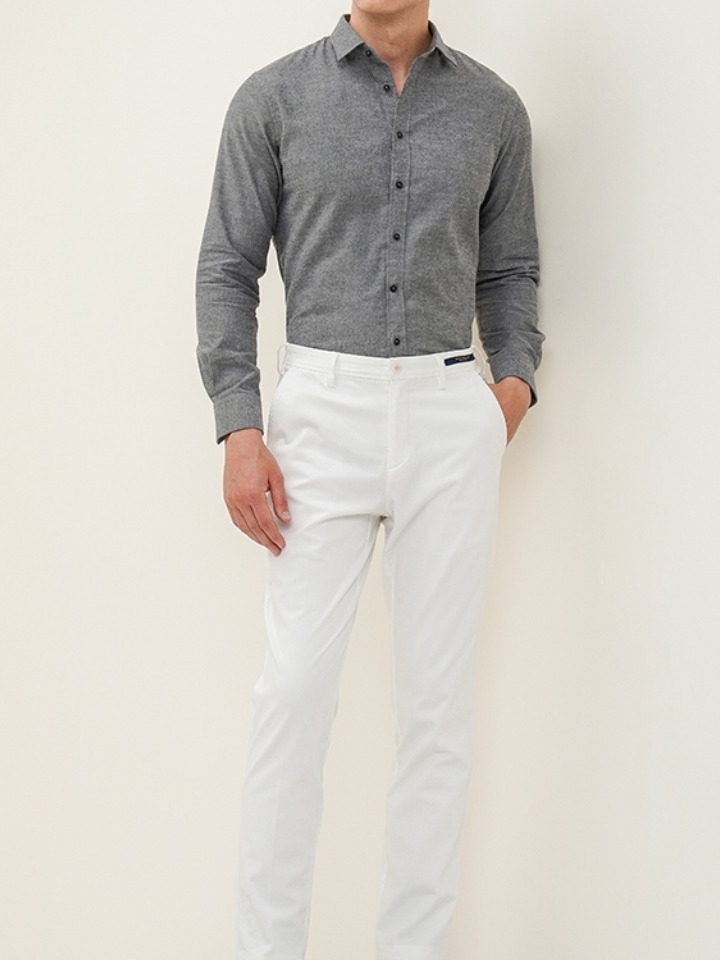 简约的高腰设计,搭配上修身的版型,上身显瘦又显高。