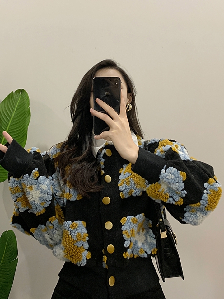 简单的圆领,直铺而下的单排扣设计,呈现出几分乖巧的小女人气息,多彩的植物花卉刺绣,得更加的精致立体,加上修身的短款版型,上身优雅而大气的唯美气质,很是吸睛!