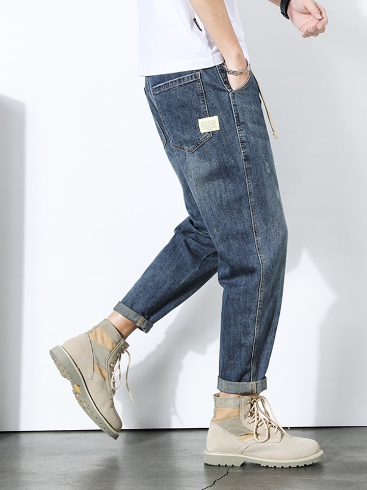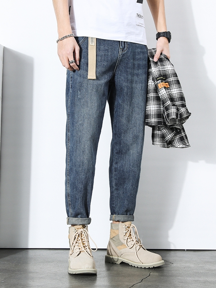 高腰设计,拉长身材比例。高腰牛仔裤,显瘦显腿长。直筒裤型,修饰腿部线条。