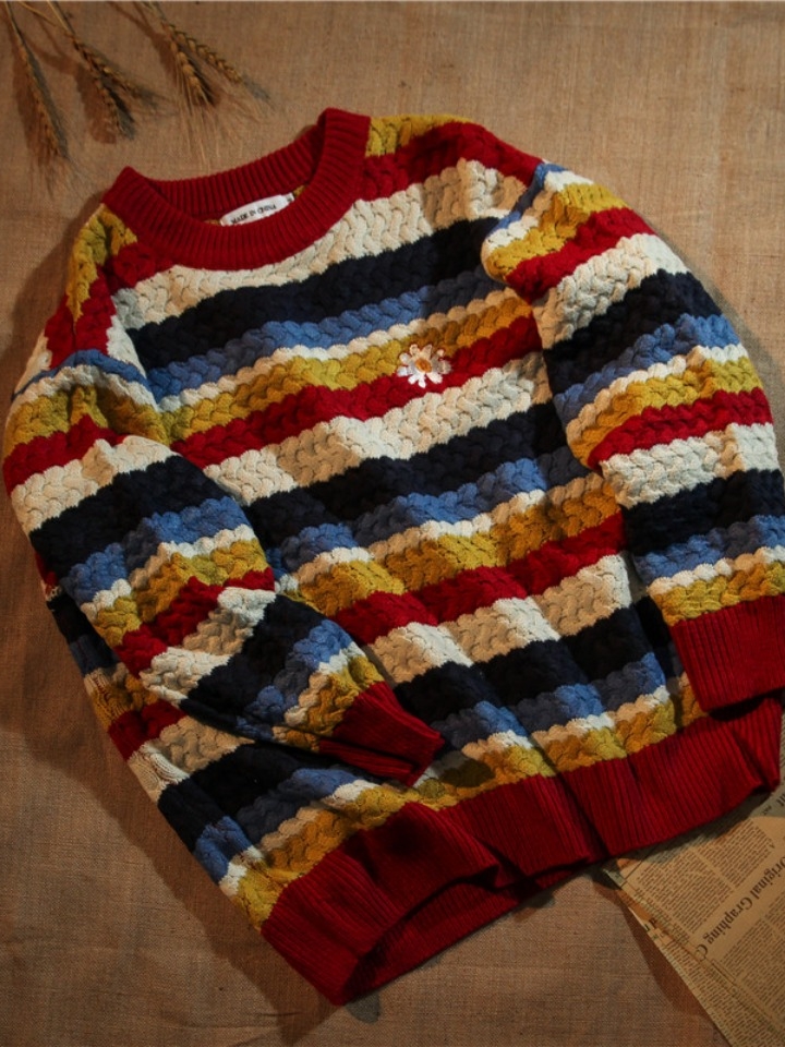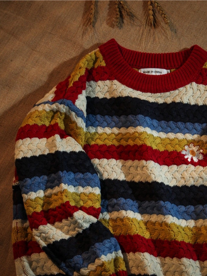 这款清新雅致的绣花圆领毛衣,给予冬日足够的温暖。采用麻花型混编设计能,这也能更好的锁住温度,抵御严寒。