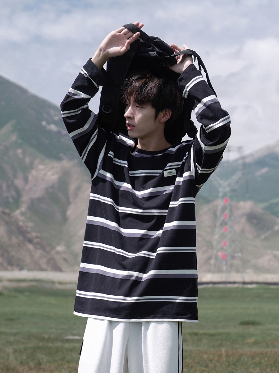 经典的撞色条纹圆领设计,衬显白皙肤色的同时,又不失青春潮流气质,很讨喜的颜色,百搭显瘦。