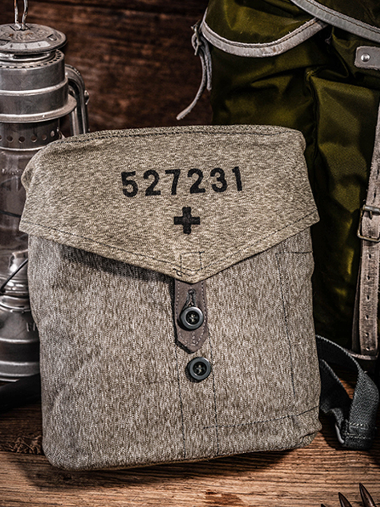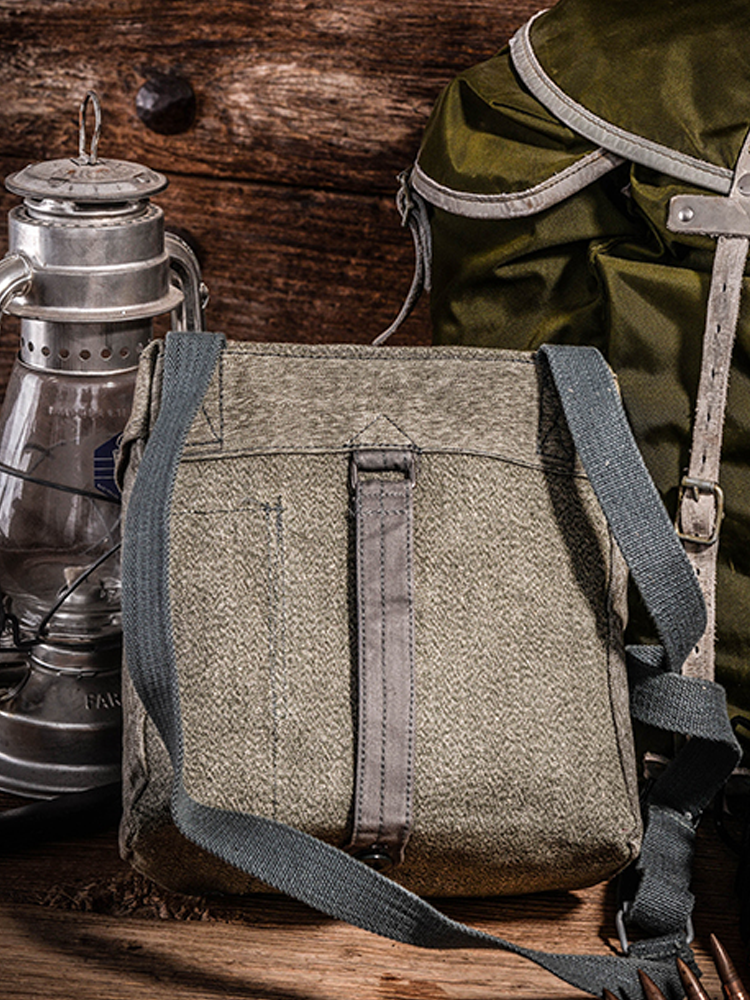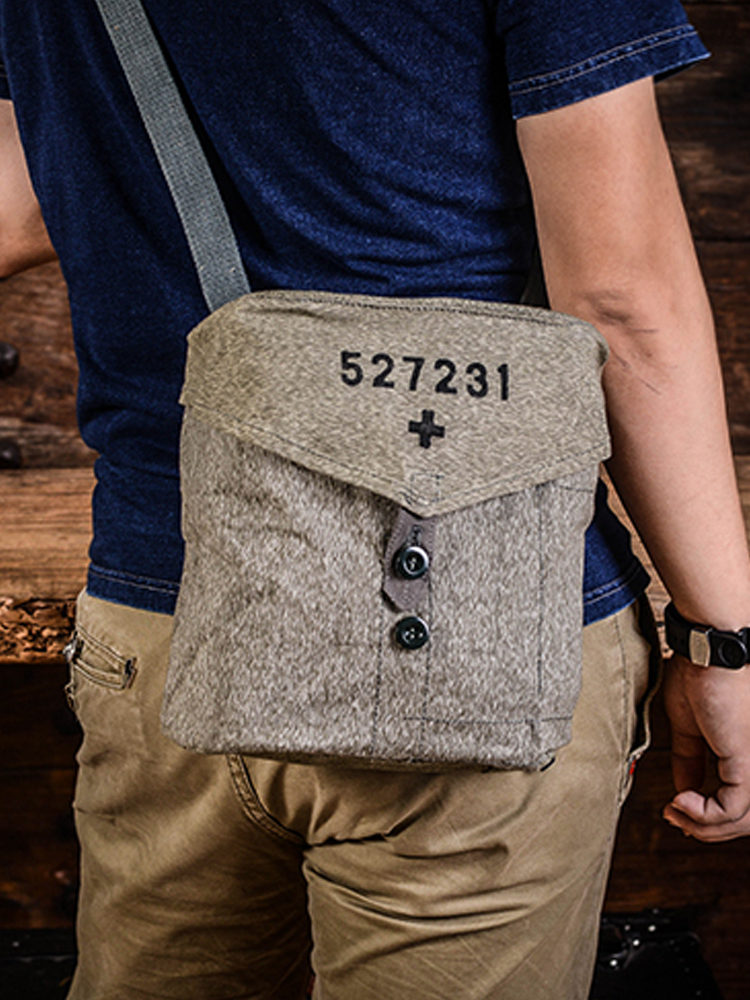 这款以瑞士军方独家胡椒盐帆布面料设计的工具挎包,有着迷人的花纱感。包包正面设有部队番号和双扣调节位,在和平年代作日常随身出行包,也是很有个性。