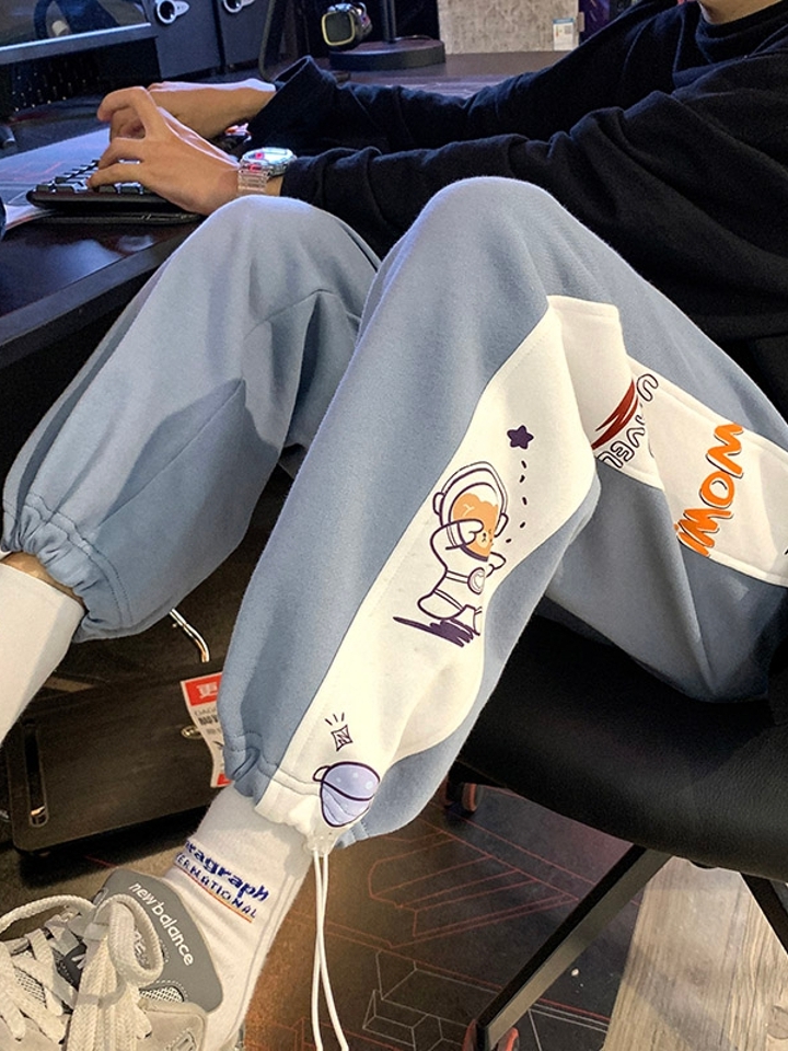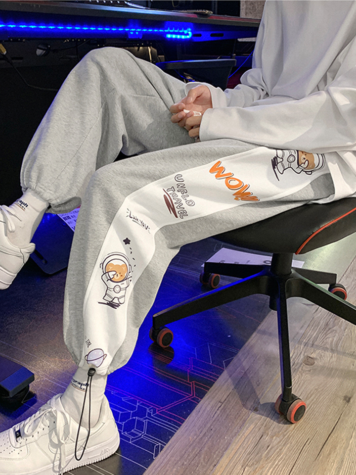 裤腰胶头腰绳设计,时尚美观。采用斜插袋设计。简约大气。脚口经典的罗纹织法,经典大方,且不易变形。只是在裤脚上做了束脚的设计,这样会更青春活力些。