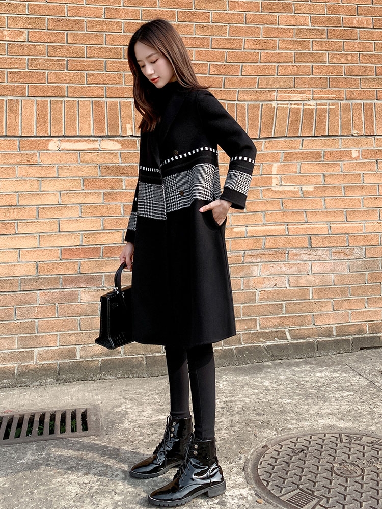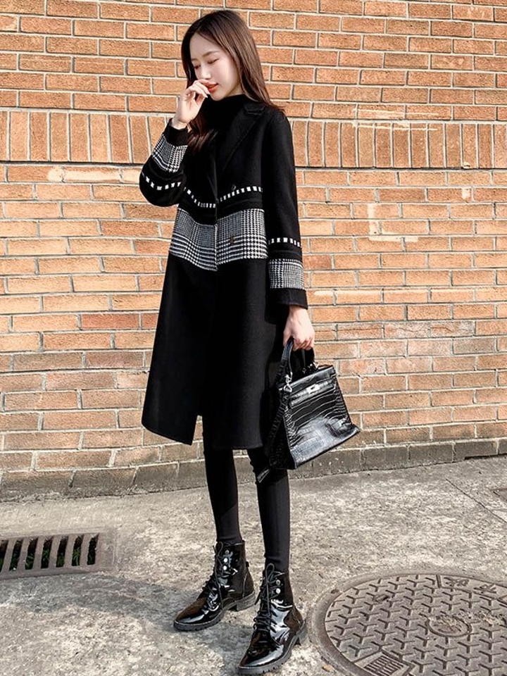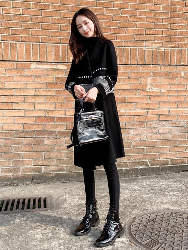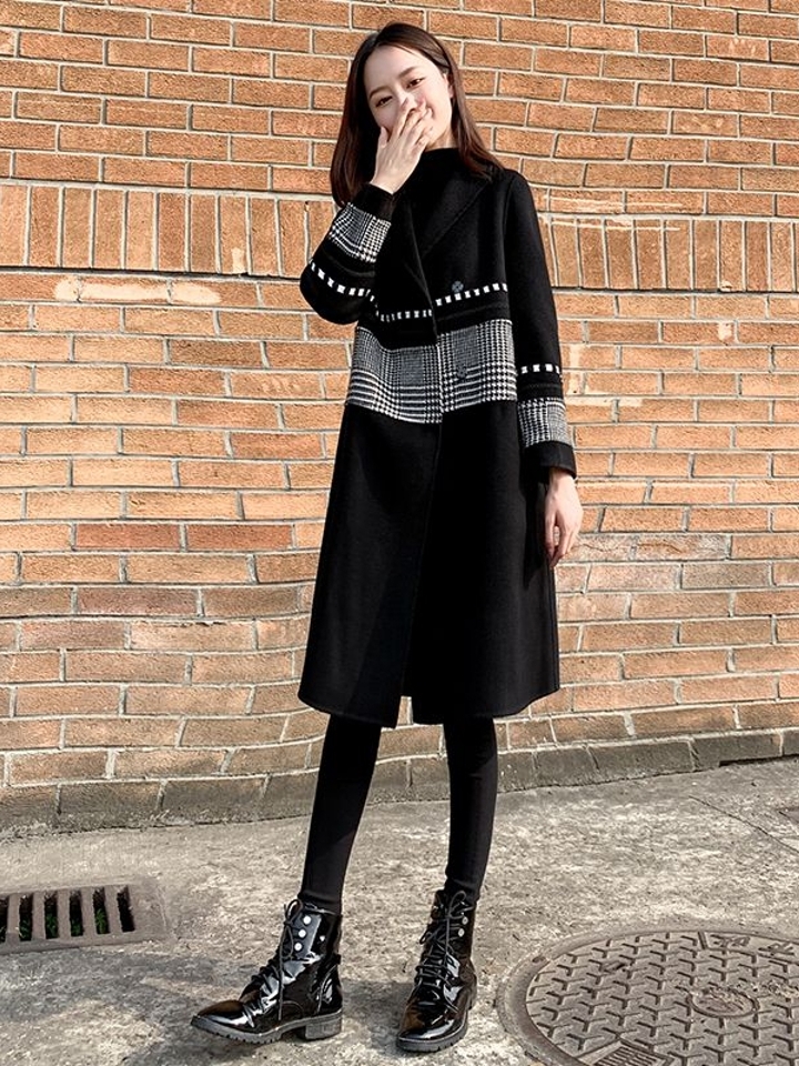加厚的西装领外套温柔软糯,充满小女生味,淡淡紫色更显得浪漫,暗格子印花打造出层次感。避免单调。