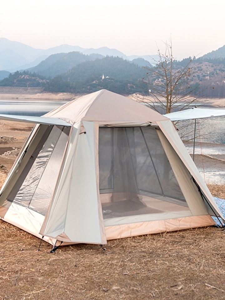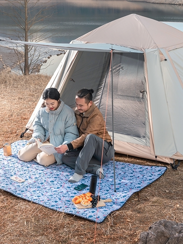 拥有便捷扣式搭建系统优点外,外帐设置的N个固定点增强了牢固性、稳定性。整个帐篷搭建收拢仅需5-10分钟,比弹簧式帐篷更加方便快捷。铝合金支架,质感轻盈,耐磨耐用,抗压性、承重性强。