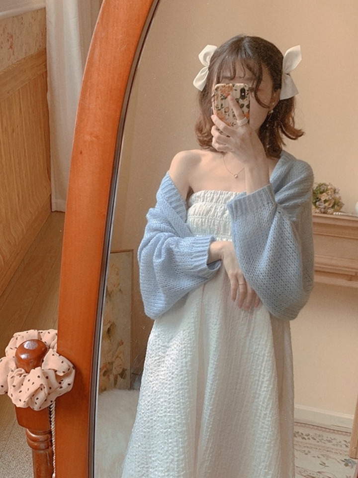 秋季里,最百搭的单品不能不提毛线开衫了,白色灰色都是很好搭配的,内搭t恤、衬衫、马甲裙都是不错的。