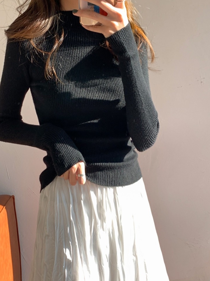 经典的半高领设计,舒适保暖,修饰优美的颈部曲线,同时具有防寒保暖作用。竖条纹纵向的视觉将身材比例拉长,显高又显瘦,面料舒适弹力,塑身效果明显