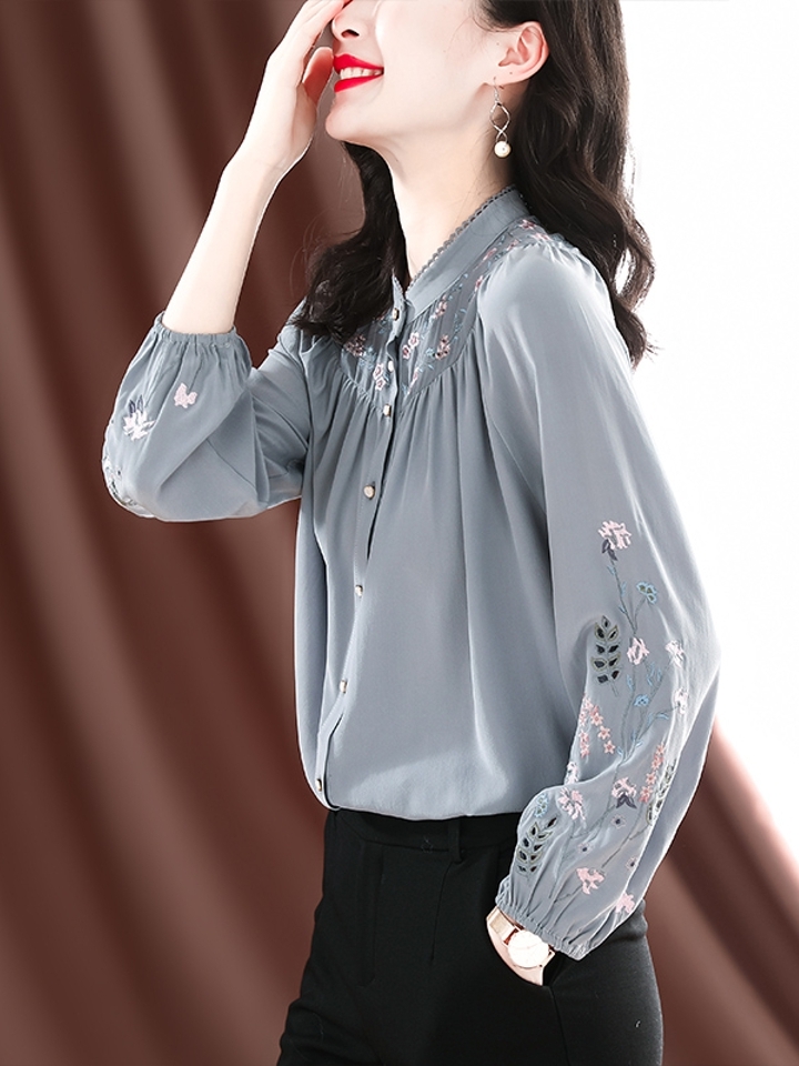 复古休闲衬衫,精选桑蚕丝,舒适透气轻松,优雅高贵修身显瘦