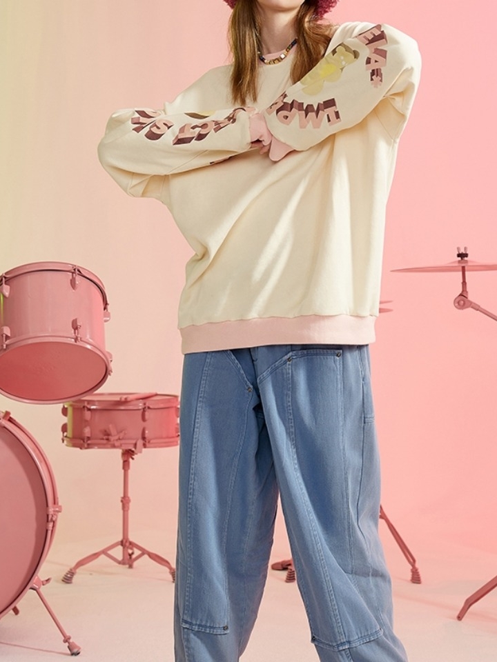 简约时尚的卫衣,结合大方的圆领,让你轻松穿出大气感。下身搭配一款休闲的牛仔裤,打造出笔直纤细的双腿线条,再穿着一双系带的小白鞋,青春又靓丽。