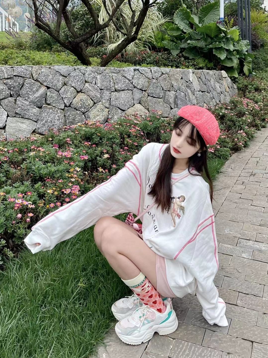 反战天使明线卫衣,该款卫衣采用宽松落肩套头卫衣版型,面料采用高品质纯棉毛圈卫衣面料,穿着舒适。
