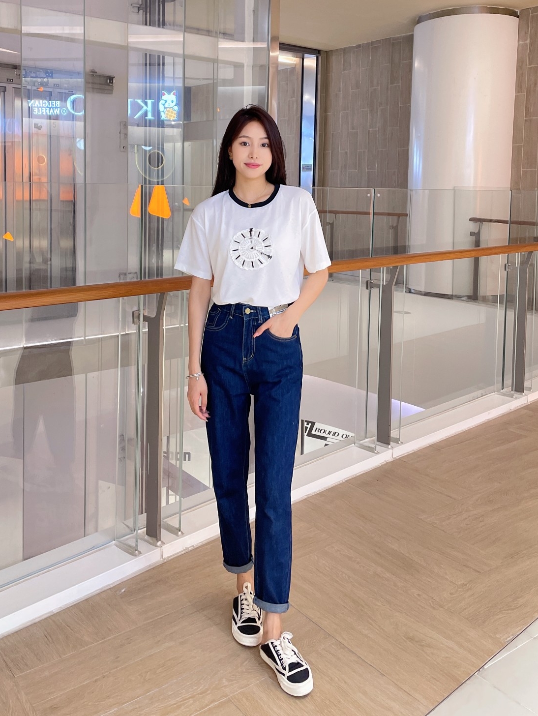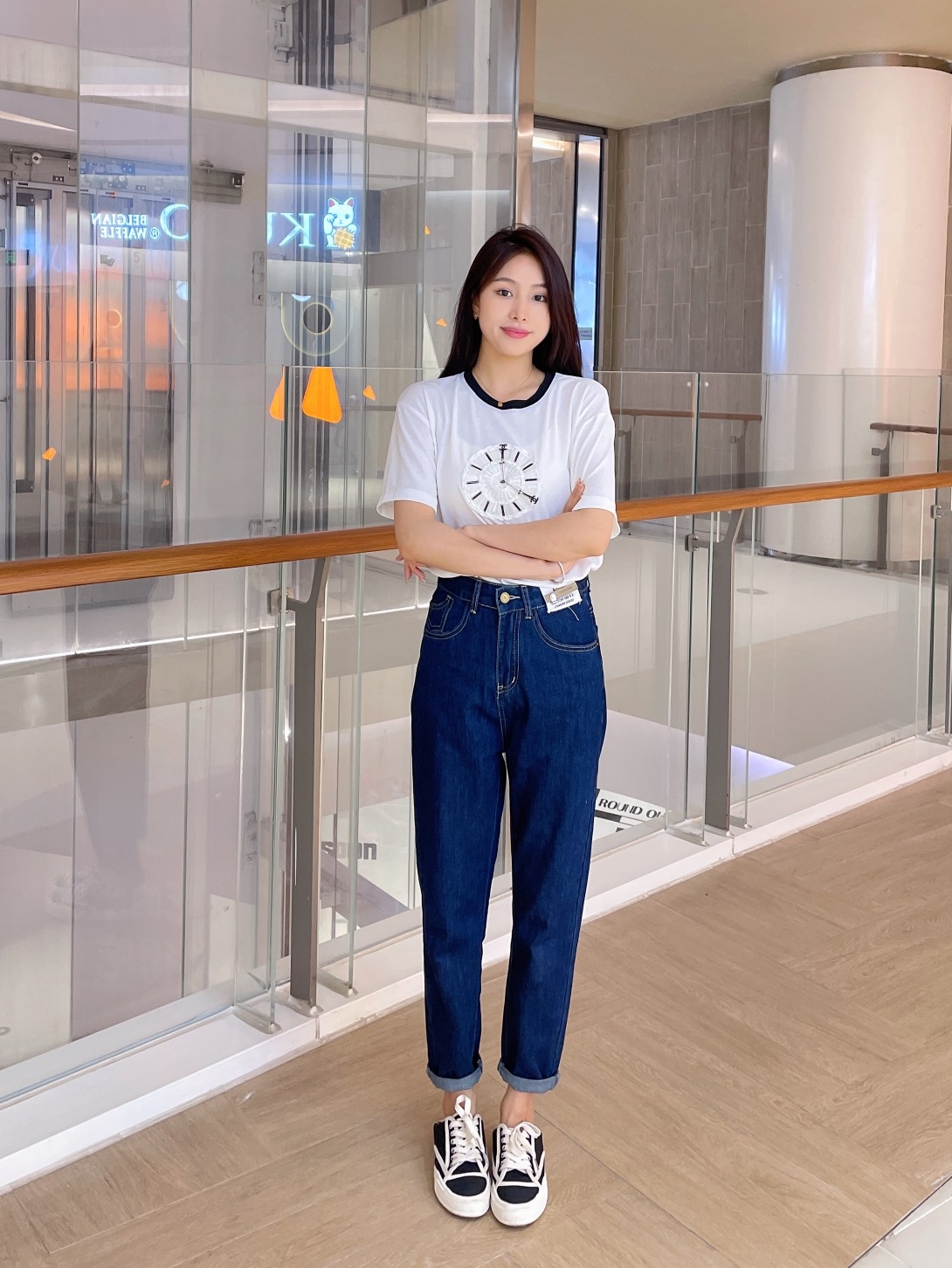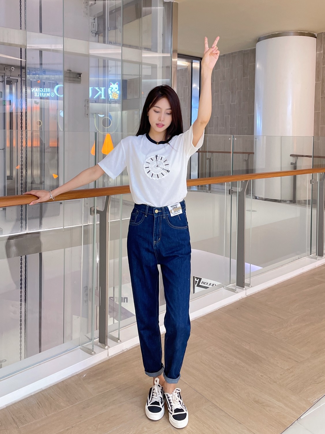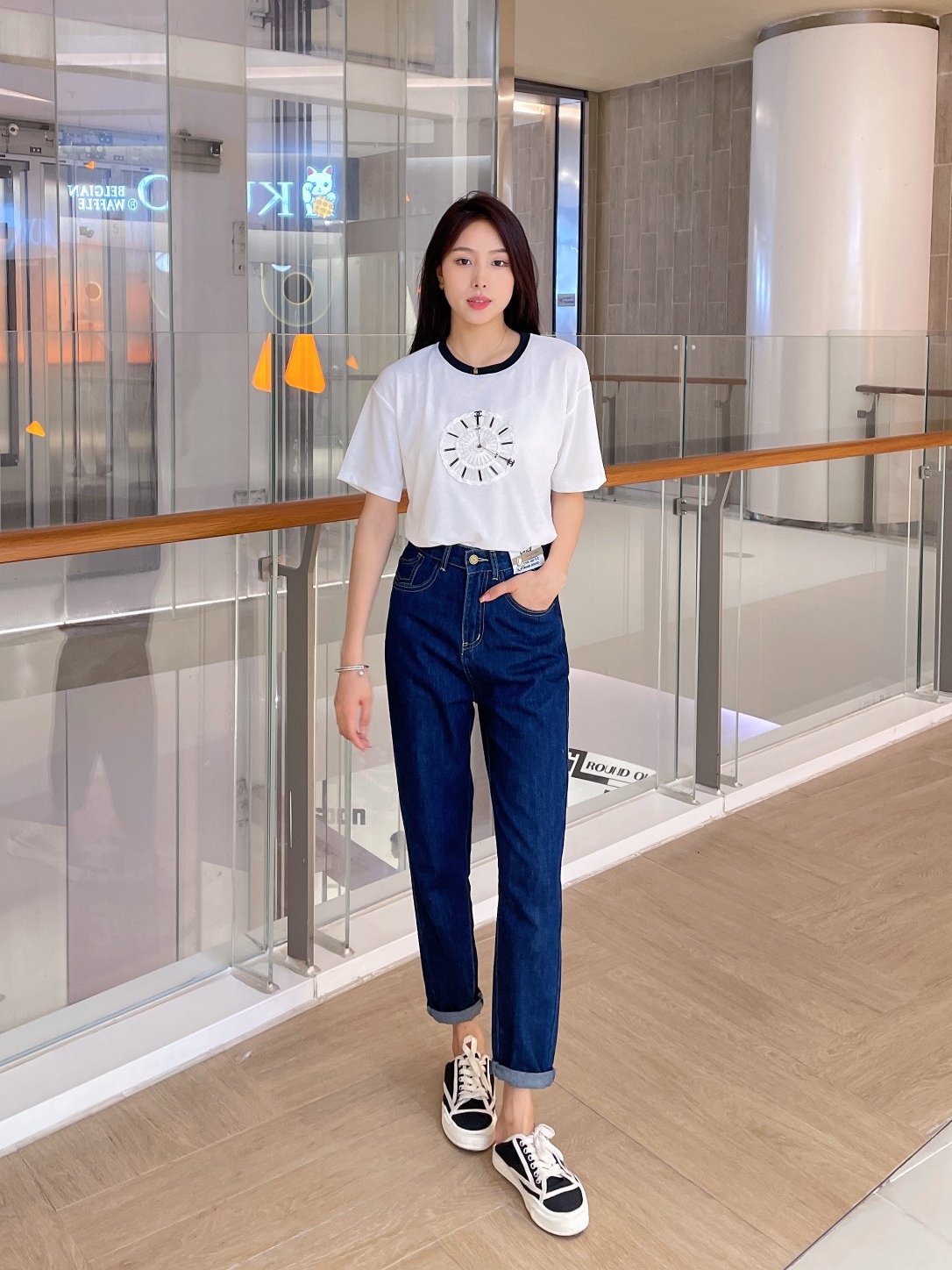 休闲款九分直筒裤,在穿搭上可以选择T桖与之组合,并将底摆进行塞腰处理,视觉上能分分钟优化身材比例,脚穿运动鞋,出街越会或是逛街都很惹眼。