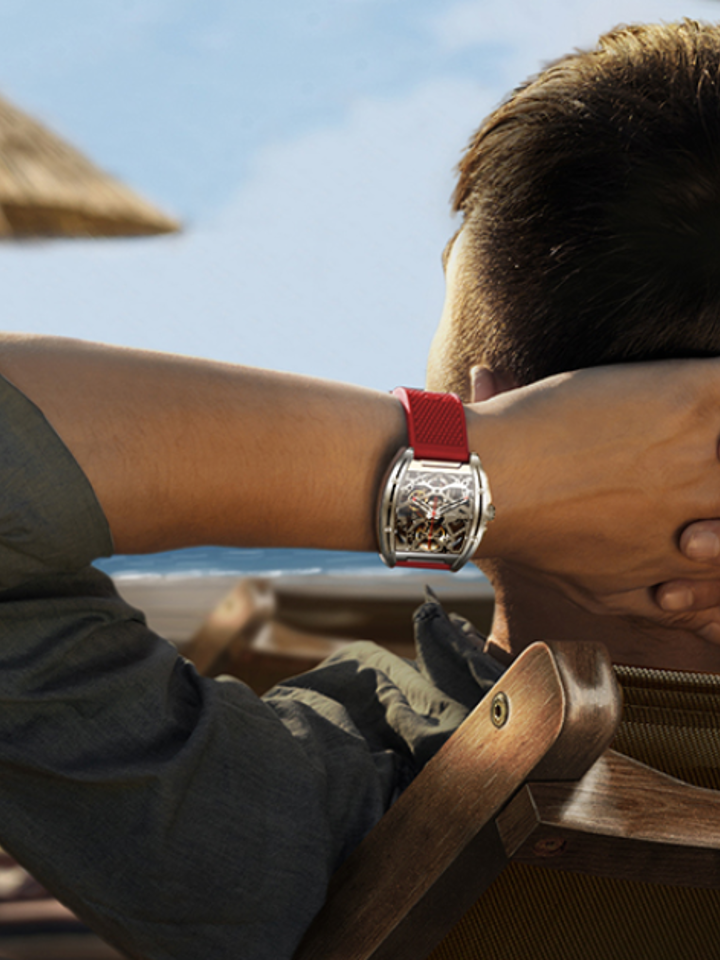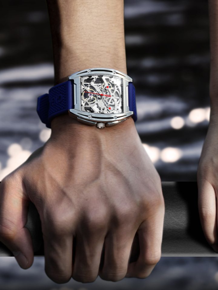 独特的透视元素和古典的镂空工艺相结合,简约中透露着不凡,精密的机械摆轮诠释着涌动不息的时间艺术,如同成功男人需经历时间的磨练。