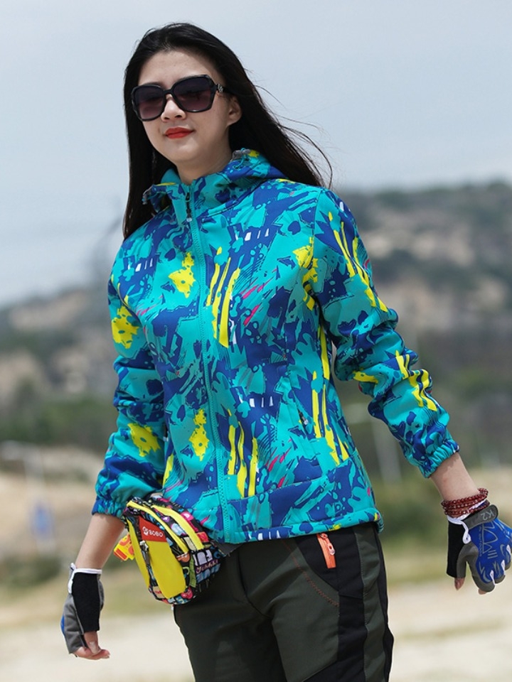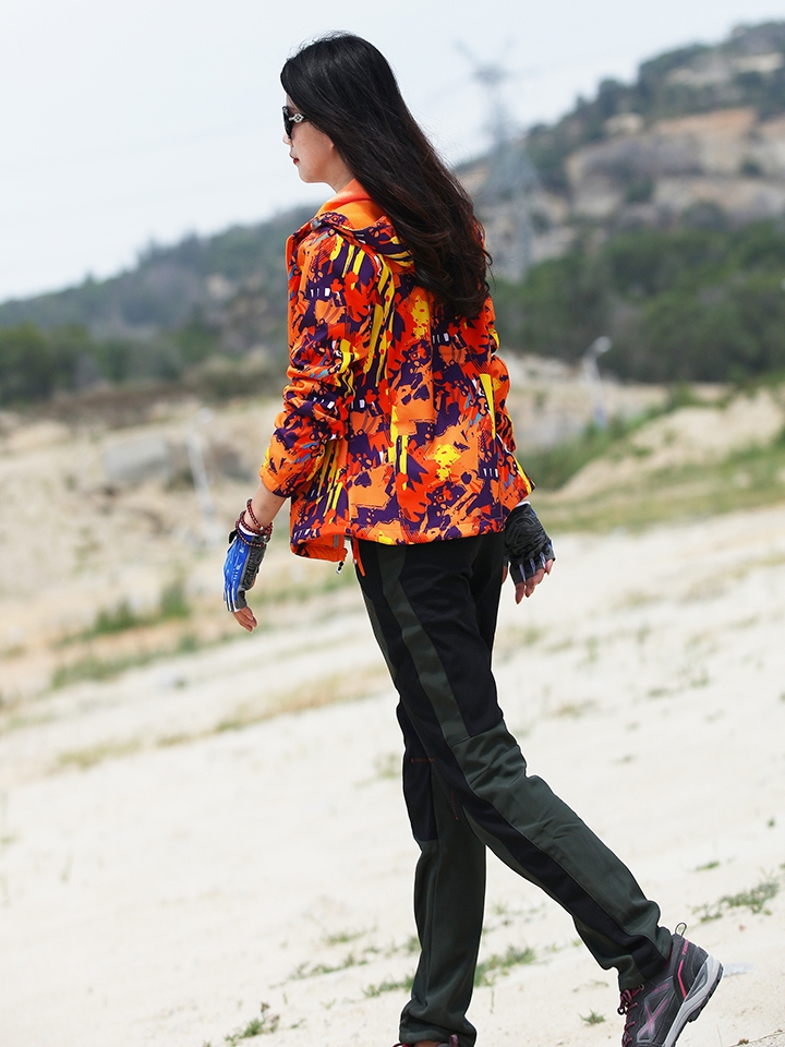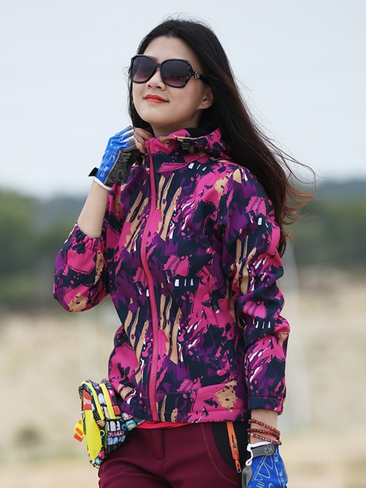 迷彩元素,凸显帅气风情,彰显女神魅力,耐穿耐脏。甄选高科技防风防水软壳面料,透气耐磨,优质抓绒里层,高效锁温,保暖性极佳。是您户外运动最佳可选。