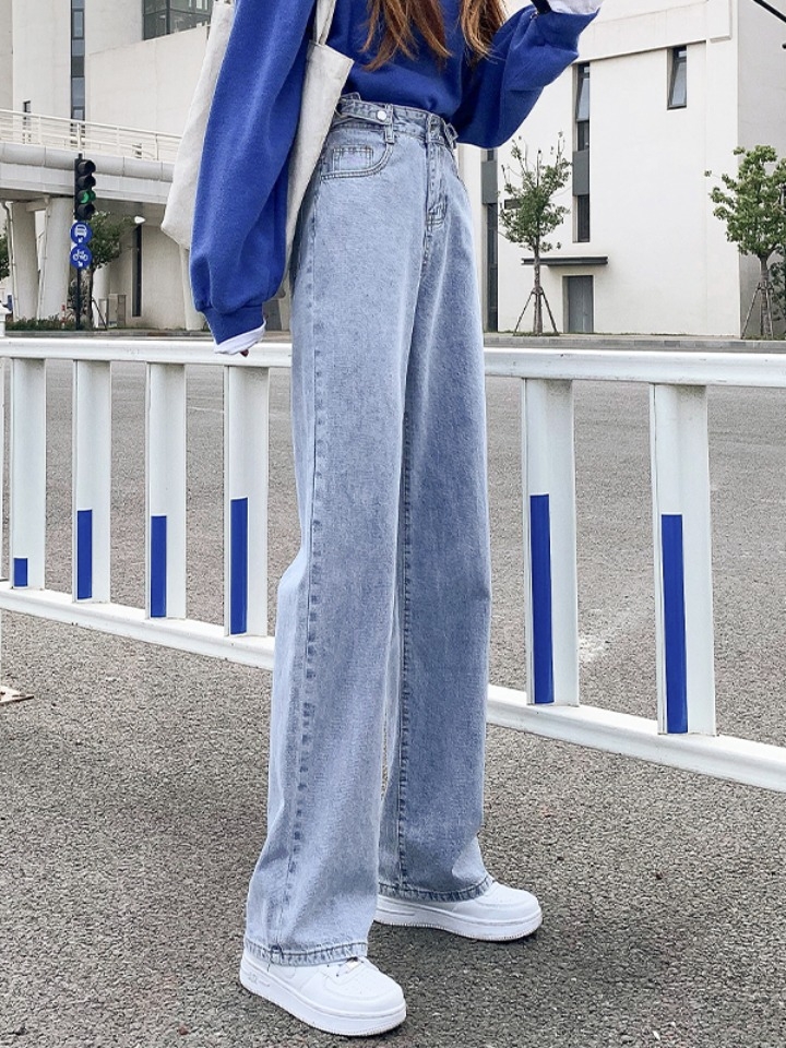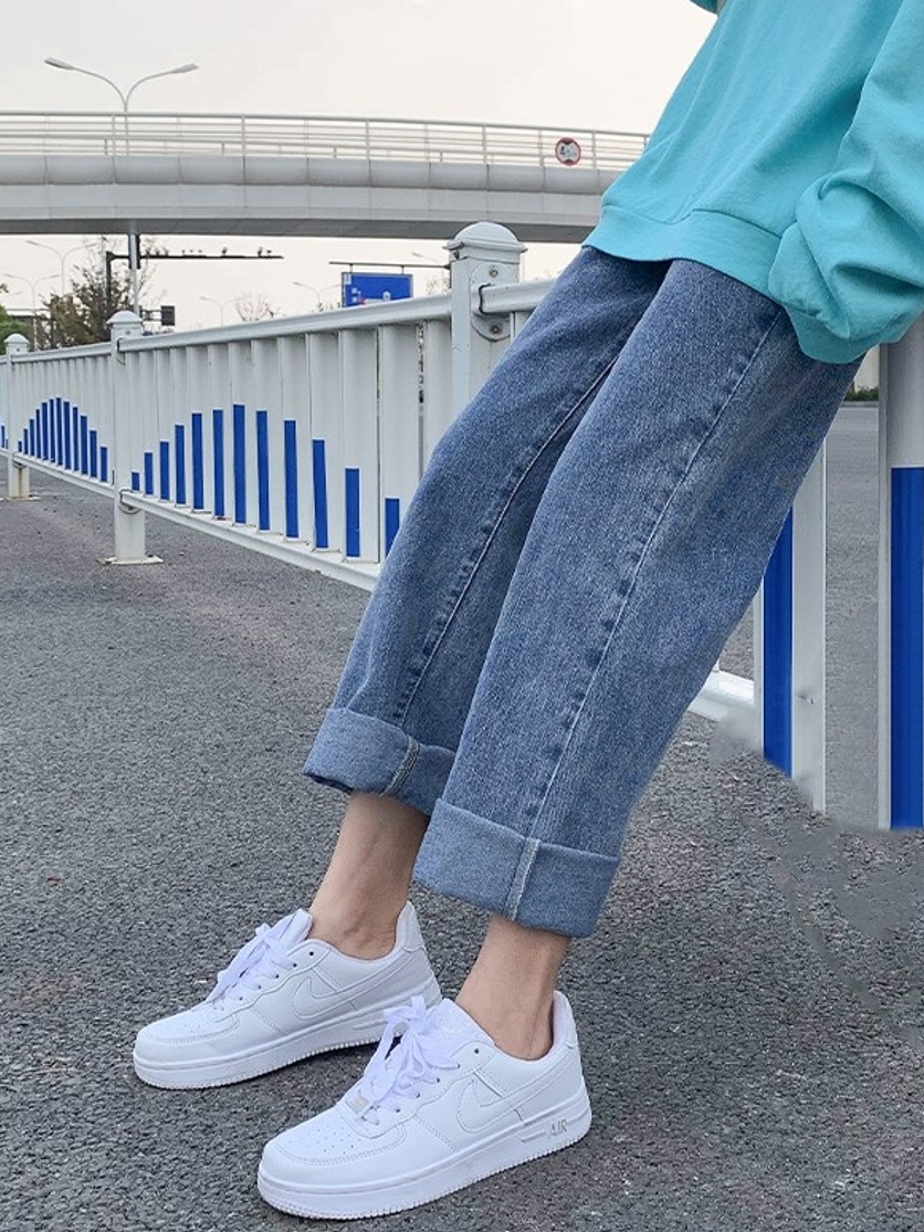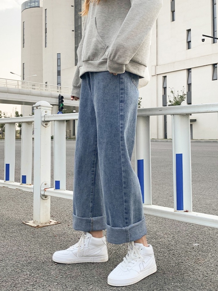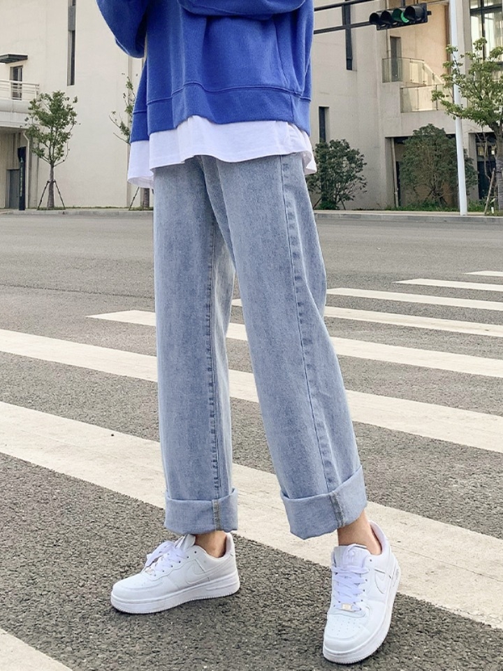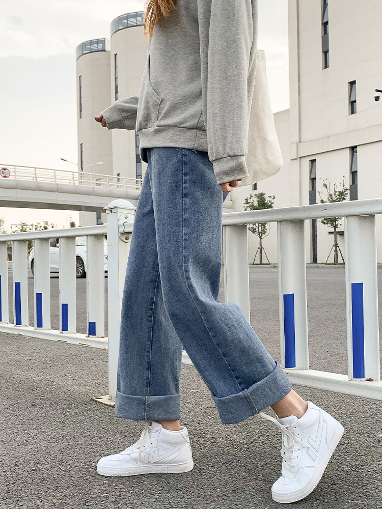 对腿型十分友好的一条直筒牛仔裤,有效地藏住肉肉,可以在腰头配上一条腰带装饰,上身搭配一件简约卫衣或T恤,束进裤子中,加上高腰设计,更修饰腰身比例。