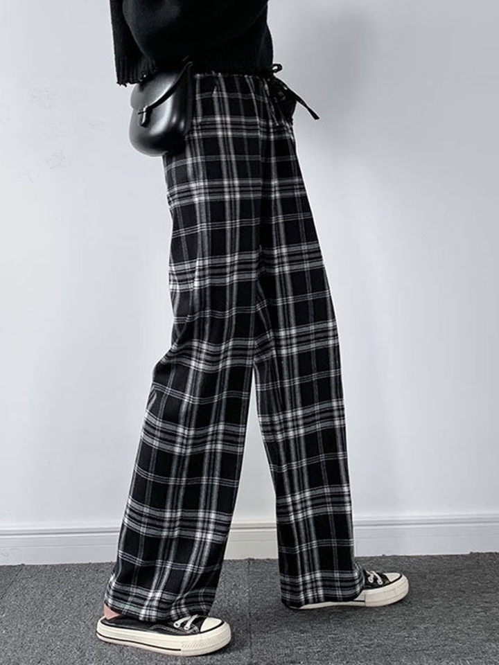 100%棉材质打造,亲肤透气穿着舒适,经典格纹元素点缀,文艺复古感十足,简约的版型,配以高腰设计,轻松拉长双腿视觉比例,阔腿裤款式完美修饰腿型,轻松显瘦。