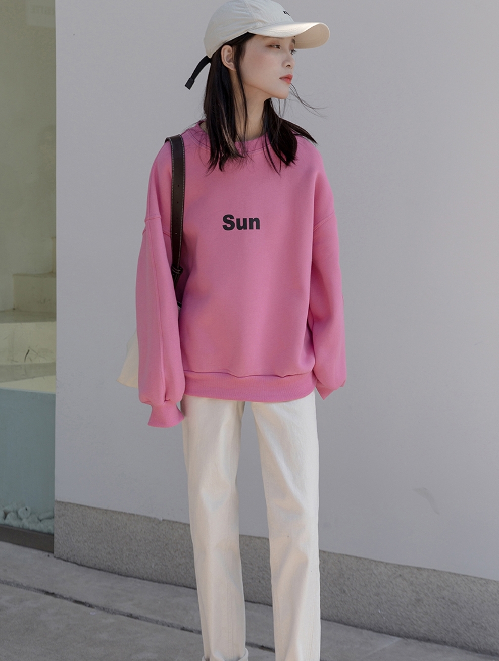非常经典百搭的字母图案,不挑身材不挑年龄肤色超好搭。宽松的版型显瘦遮肉,随意又慵懒的小女人味,嫩粉嫩粉的颜色展现您不一样的甜美可爱的气质。