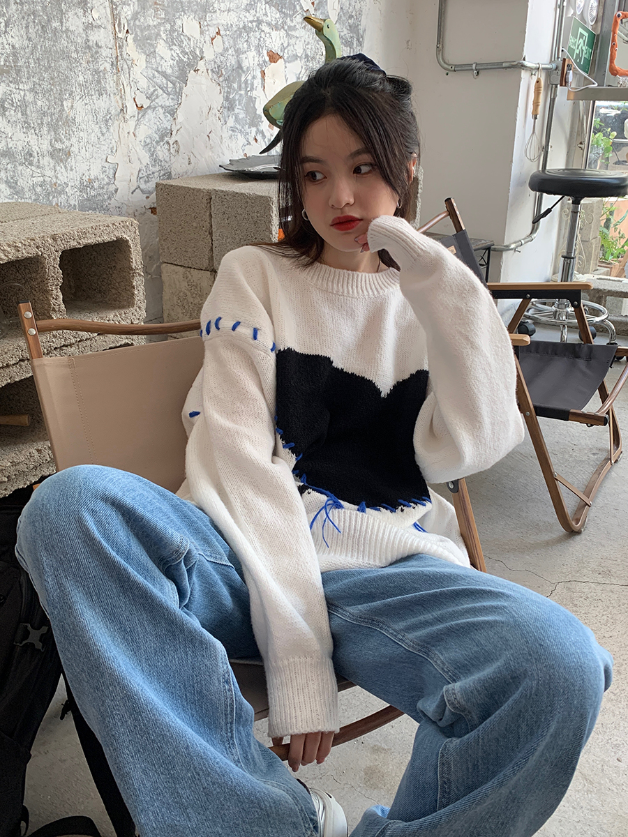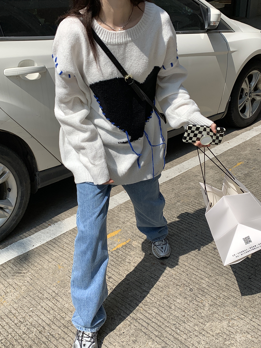 经典的撞色针织毛衣,胸前爱心设计,简单中不失甜美可爱,优质面料超舒适