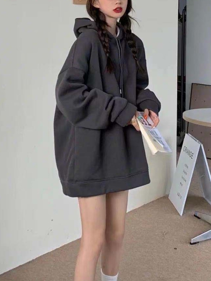 简约的纯色卫衣,休闲随意,完全百搭哦;宽松的版型设计,十足的遮肉显瘦,不挑人穿;经典的连帽抽绳,很好的挡风,且俏皮可爱,适合于任何场合哦!
