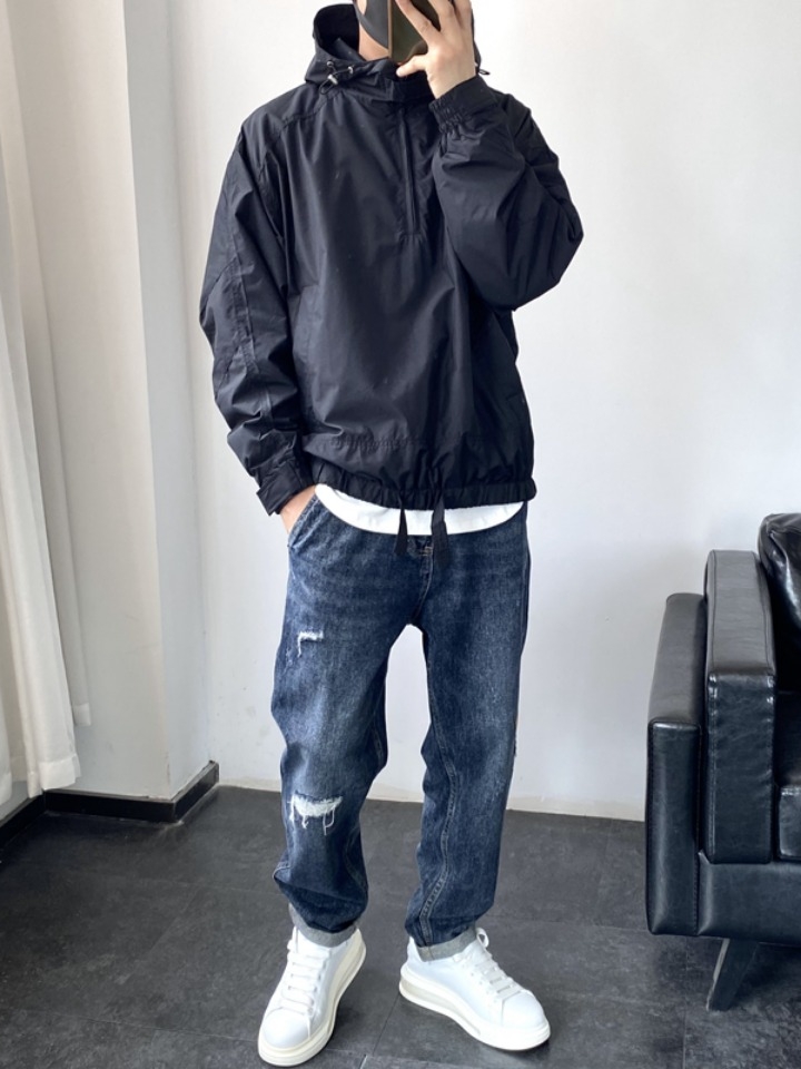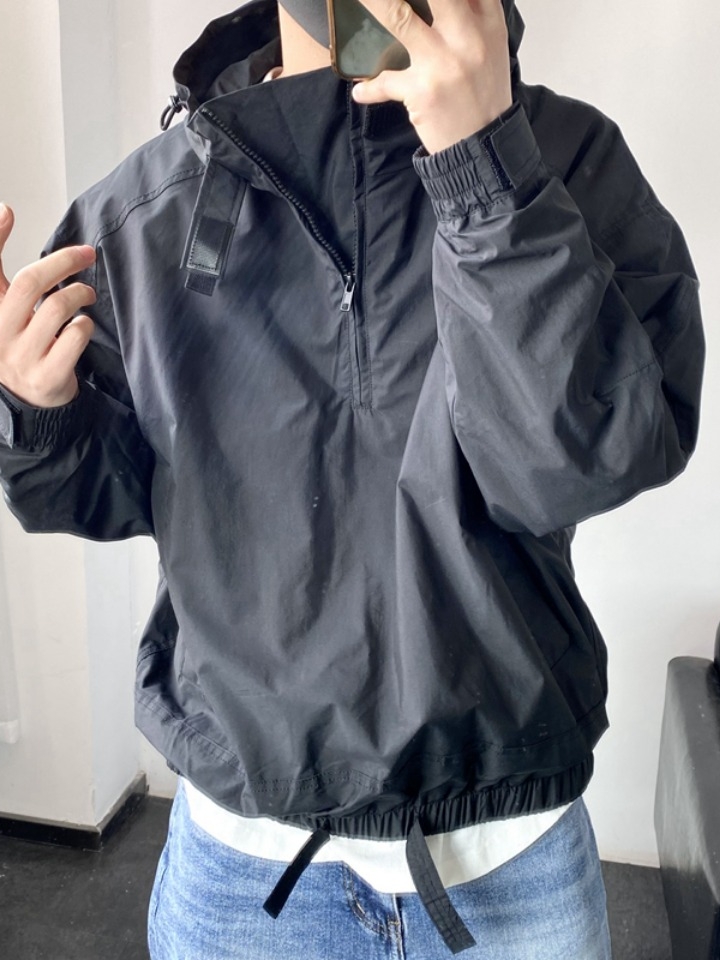 这款短款精干的外套,在纯色的衣身上融入复古的风格,显得十分具有古典范。这款版型宽松显瘦,而且在搭配上不会给予你太多的拘束。高领连帽设计,在一定程度上,抵御了风寒的入侵,美观又实用。另外,对称式的口袋设计,人性化十足,给予你充分的收纳手机等等财务的空间。