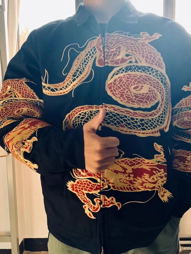 纹理细腻,质地韧实耐磨,舒适外套,柔软有弹性,外套炫酷十足,精致的臂章潮的不要不要的。