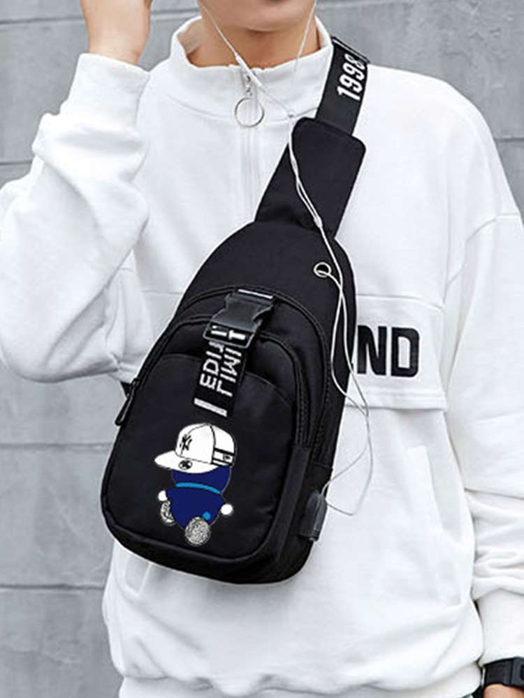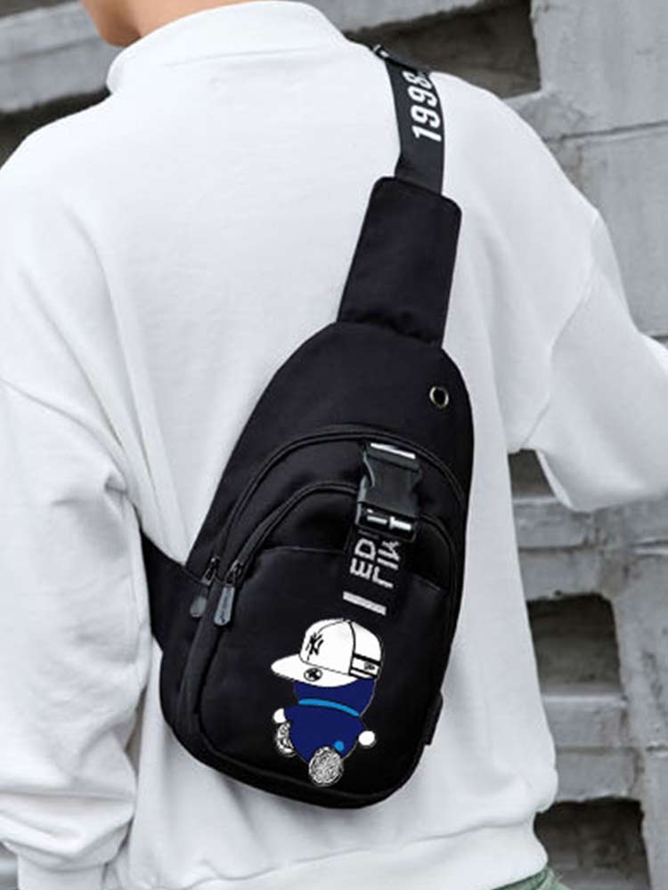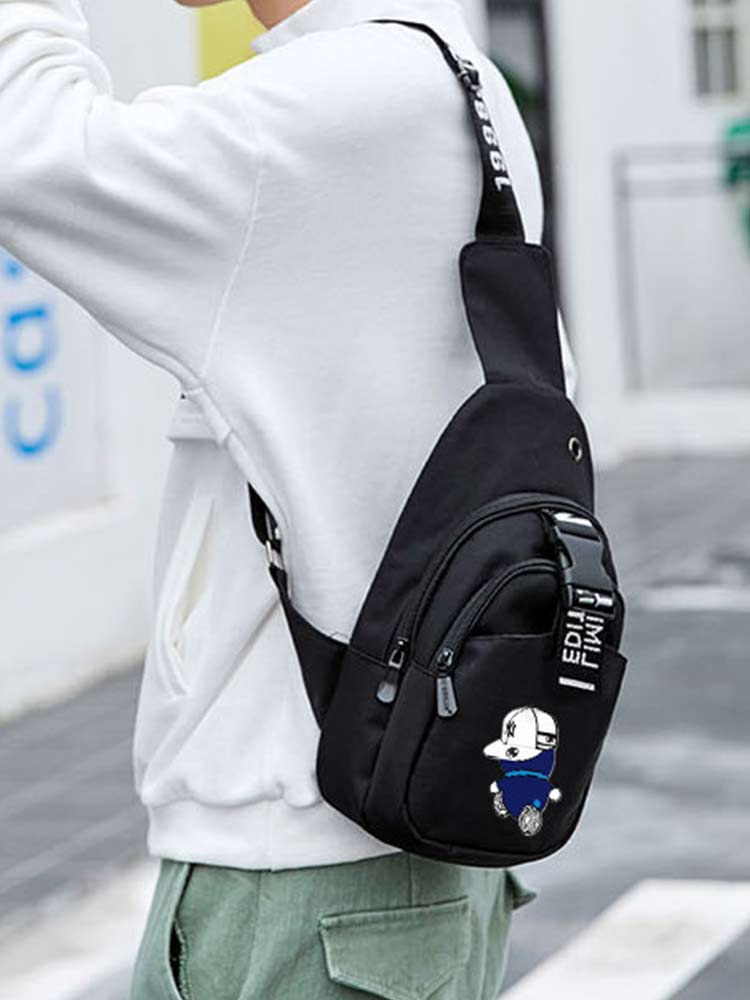 这款黑色斜挎包适合绝大多数休闲场合,酷炫的包身设计在整体造型中会起到提亮效果。在搭配方面,可以选择印花T恤或是格纹长袖衬衫,再加上蓝色阔腿裤和舒适的运动鞋,整体造型look起来非常的个性时尚。