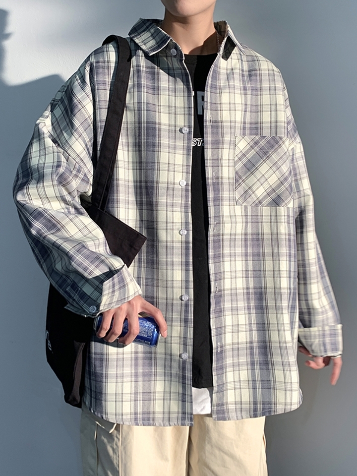 非常心水的格纹衬衫,用格纹调剂穿搭,带着文艺标签的黑白菱格,尽显文稚气息。乖巧的翻领,搭配黑色的小排扣,简洁利落,气质十足。