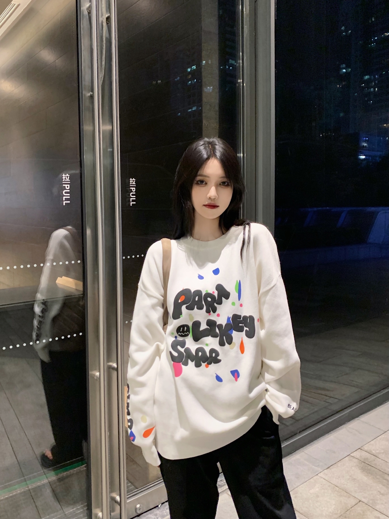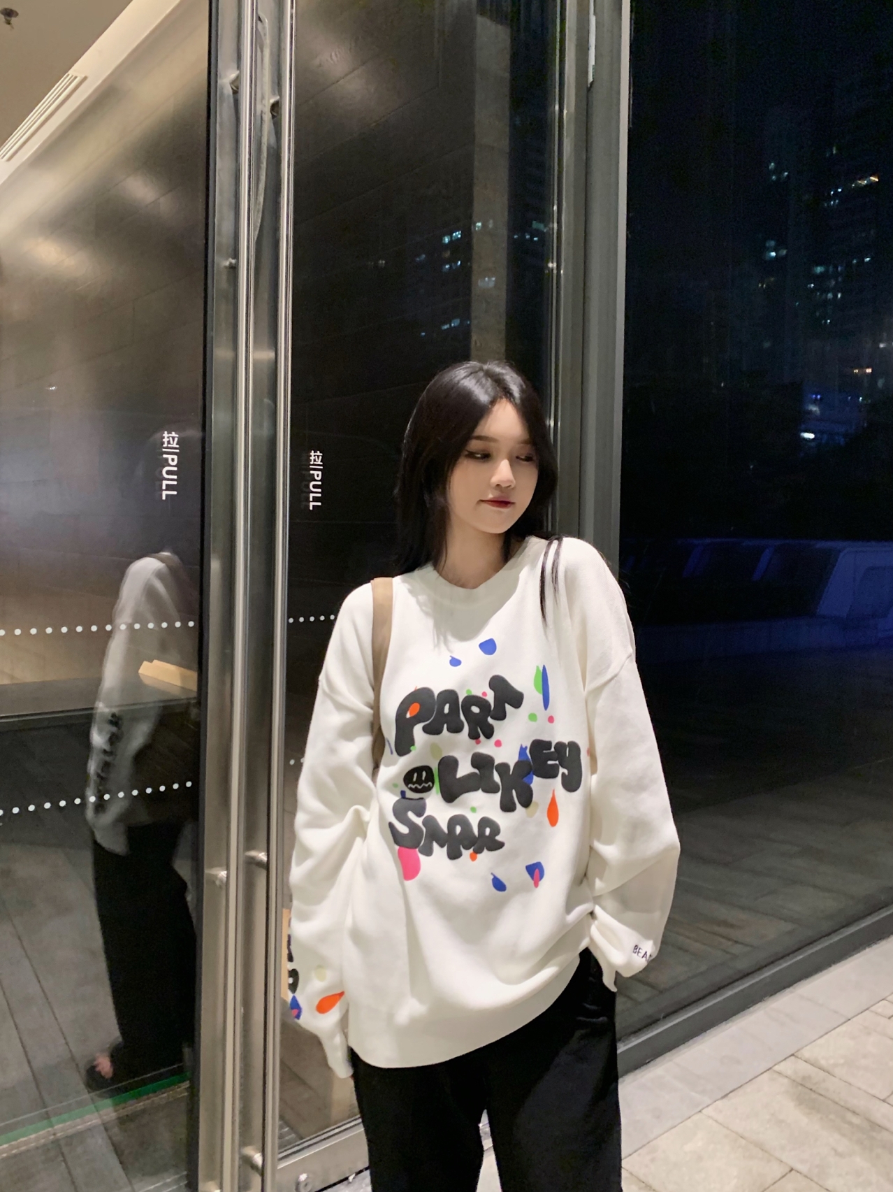 这款t恤是简约的风格,宽松的版型,时尚百搭,胸前的字母印花,很有个性,搭配牛仔裤或者短裤都很好看。